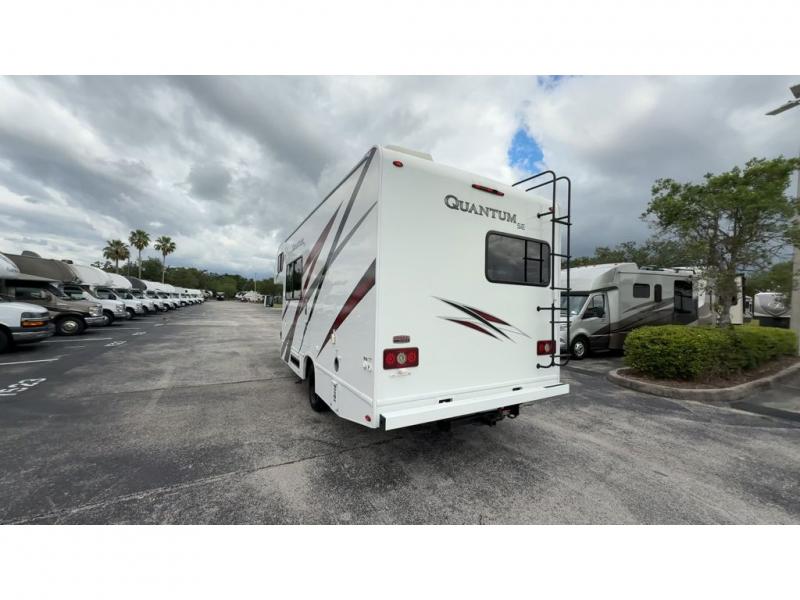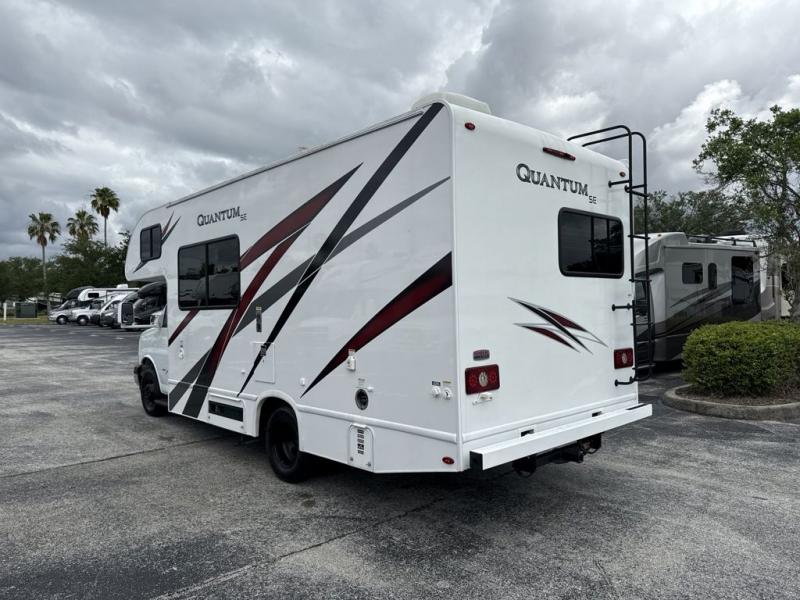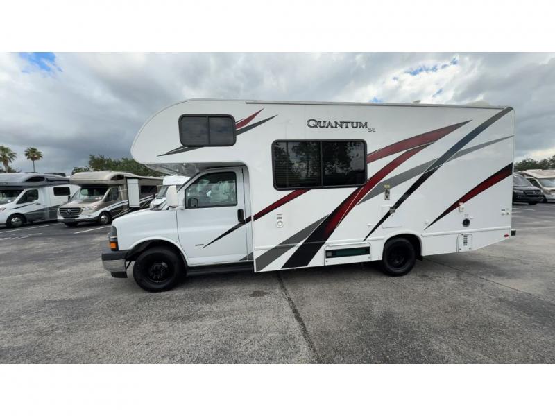 Each Quantum SE is constructed atop a Ford E-Series chassis and powered by a 7.3L V8 325 HP engine. Model SE22 is also available with an optional Chevy chassis which is powered by a 6.0L V8 401 HP engine. A one piece fiberglass front cap and slick fiberglass exterior with a graphics package provide a stylish appearance that is easy to maintain for years of family travel. You will also love the keyless entry and dash applique', plus the drop down stairwell entrance step with accent light which is a great feature after dark. Plenty of seatbelts for your rear travelers in all rear seating positions will keep your passengers safe as you head to each new adventure destination. Each unit provides a MEGA-Storage compartment, and each roto-cast storage space is lighted so you can easily find what you need even after dark. The on-board 4.0 kw gas generator and solar prep make going off-grid for awhile easy. Why not make one of these Quantum SE models your new traveling home-on-wheels.