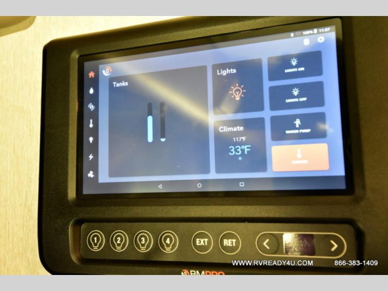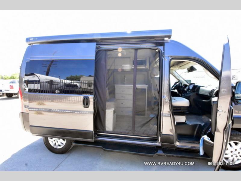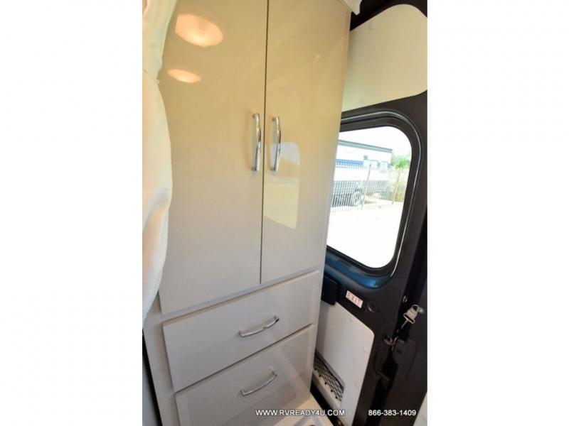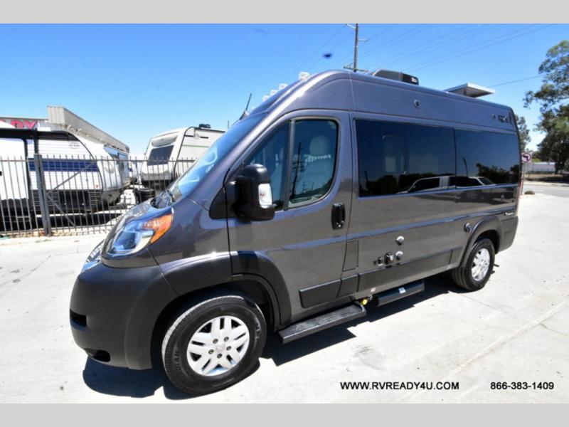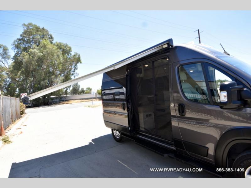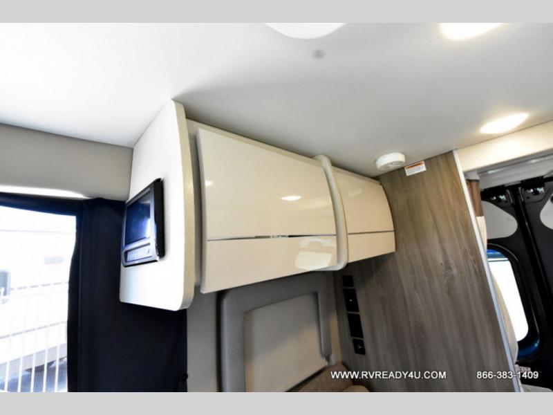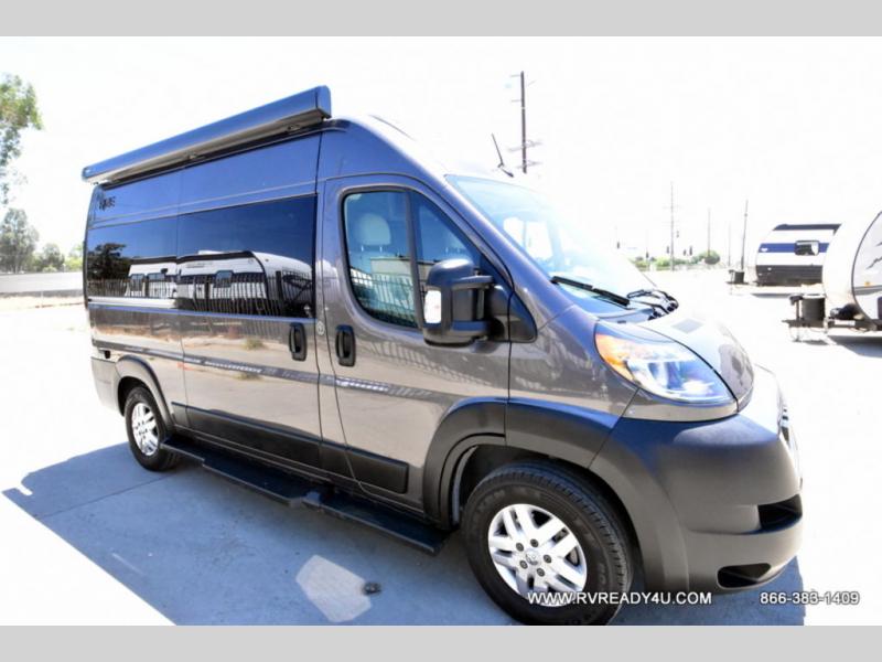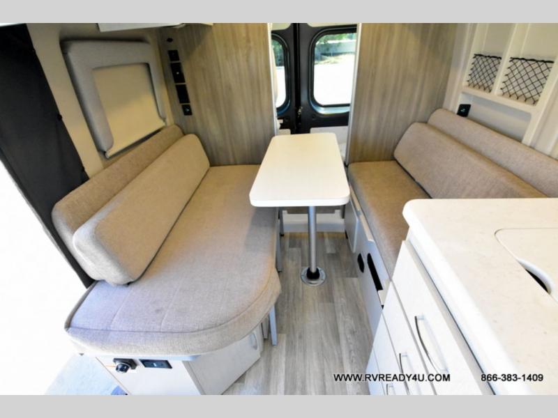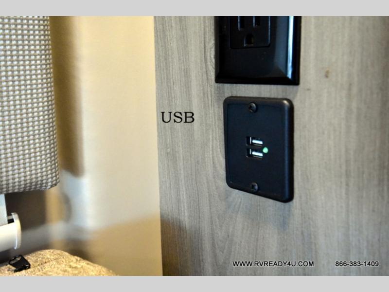 The Rize Class B gas motorhome by Thor Motor Coach allows you to experience the camping lifestyle in a compact RV packed with convenient features. There is a 3.6L Pentastar V6 engine and 276 HP to power your excursions, and the outdoor enthusiast will love the 190W solar panel and solar charge controller. Each model includes residential vinyl flooring, TechnoForm Euro-style upper cabinet doors, and premium window privacy shades. You'll find pressed countertops in the kitchen and a glass protective cover and task lighting above the cooktop to easily cook meals each day. The keyless entry system adds to the convenience found throughout these models, plus there is an exterior LP connection if you want to hook up your own grill and a rear water sprayer to wash off your hiking boots.