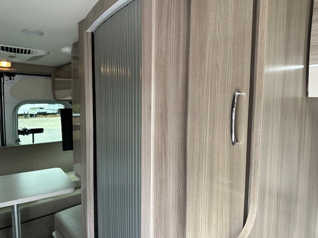 Experience a home away from home with this motorhome! You can lay your head at night on the manual rear sofa bed system and watch your favorite movies on the 24" TV across from it. There is a closet next to the manual enclosed wet bath so you can keep your towels close. Prepare your best home cooked meals with the gas two burner cooktop with glass cover, enjoy your meals at the sofa with a removable table on swing arm, and store any leftovers in the single door stainless refrigerator. The three large opening side windows let in some natural lighting and fresh air!