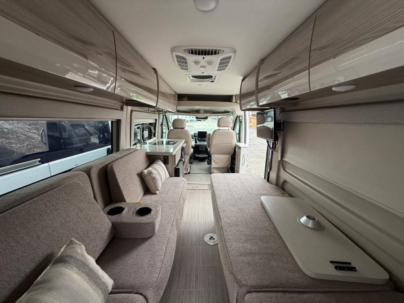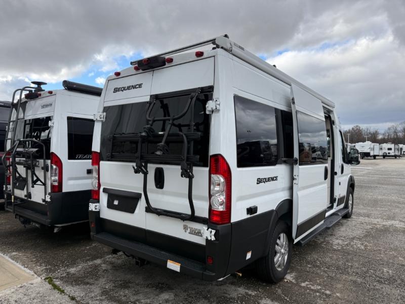 Each one of these Thor Motor Coach Sequence Class B gas motorhomes are built with a RAM Promaster 3500 XT window van chassis and powered by a fuel-efficient V-6 engine for an easy drive, economical explorer van! Their internal storage capacity is increased by the driveshaft not running to the rear making it possible for the holding tanks, electrical components, and LP systems hidden underneath. They are Thule equipped with a roof ladder to view your destination in a different perspective, a bike rack for two adult bikes, and a lateral arm patio awning with integrated LED lighting. Modern living and convenience is what you will find throughout the interiors with a premium touchscreen dash radio, Apple Car Play and Android Auto that connects your favorite music and podcasts through USB or Bluetooth, and TecnoForm S.P.A. Euro-style cabinetry. Plus, there is residential vinyl flooring so you can bring your furry friend along and not worry about messes becoming stains!