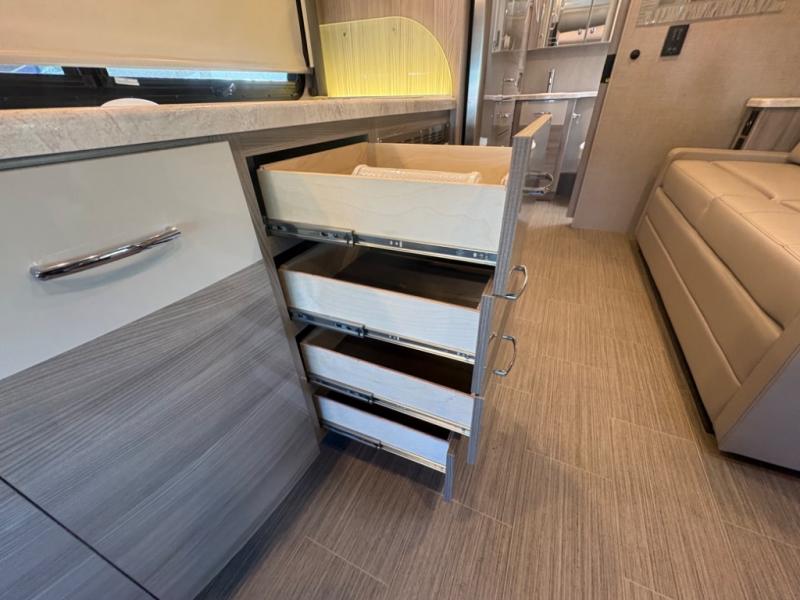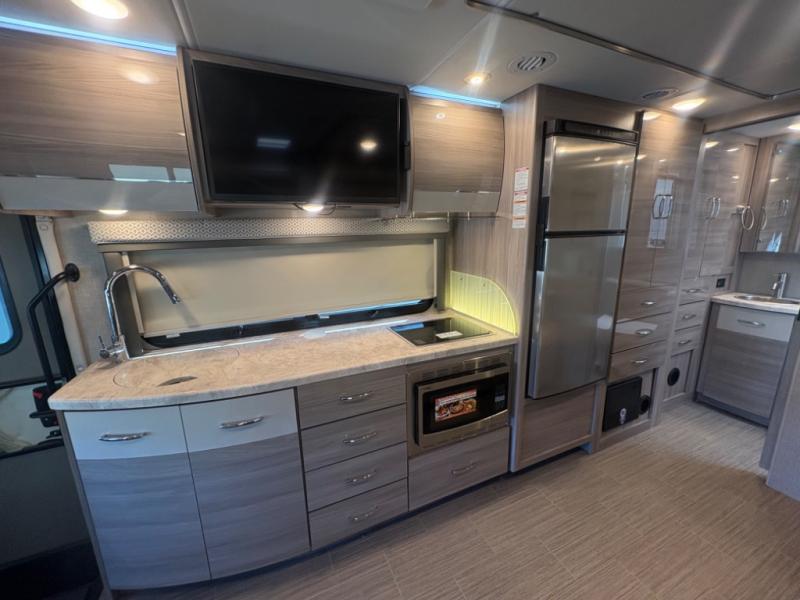 You will be well on your way to unforgettable journeys when you purchase the Thor Motor Coach Tiburon Sprinter Class C diesel motorhome and add it to your line-up! What makes the Tiburon Sprinter so special are the elegant and stunning interiors combined with the eye-catching exterior and powerful Mercedes-Benz Sprinter chassis with 3.0L V6 188HP engine. You will stay safe as you travel because the Mercedes-Benz safety package includes active braking assist, attention assist, active lane keeping assist, a wet wiper system, and a distance regulator distronic plus. As you tackle each adventure, you'll enjoy the cockpit features that allow you to enjoy traveling, like the Mercedes-Benz multimedia dash radio with Bluetooth®, navigation, and SiriusXM® and the rearview mirror with back-up system. And don't overlook the electrical and plumbing features! You will be impressed by the Winegard® ConnecT™ 2.0 Wi-Fi/4G/TV antenna, tankless water heater, and 200W solar charging system with power controller.