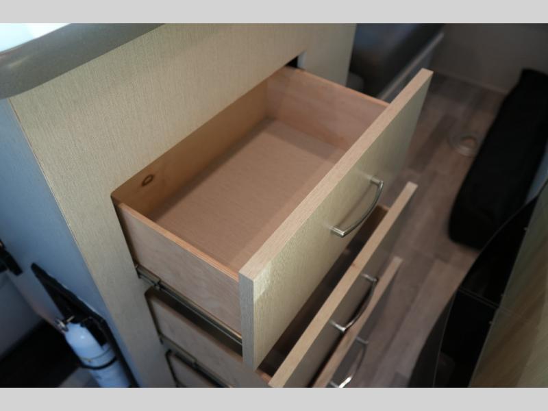 The interior features TecnoForm Euro-style cabinetry, premium pull-down shades, solid surface countertops, and Welformed interior wall panels. Whether you're cooking, working, or relaxing, everything is crafted to feel upscale and efficient. The Truma Combi Eco furnace and water heater keep you warm and supplied with hot water, while the Re(Li)able Power Pack and Rapid Camp+ multiplex control system make managing your coach simple and dependable.