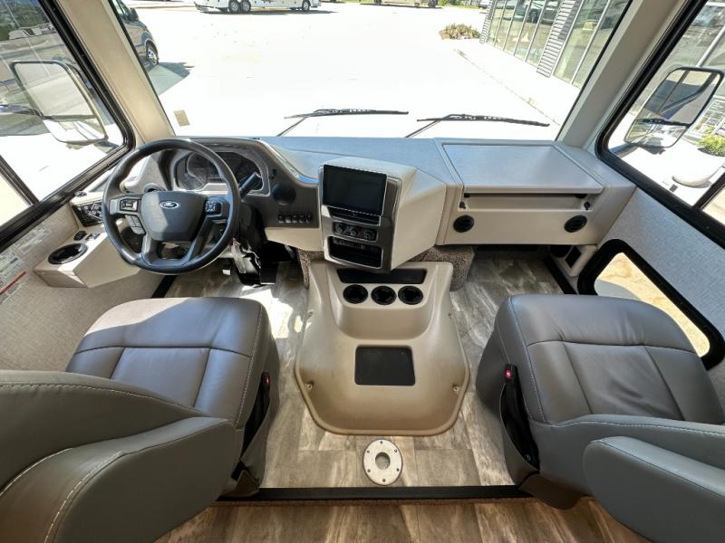There are all sorts of adventures to be had with the Thor Motor Coach Windsport Class A gas motorhome! Built on a Ford F-53 chassis, the Windsport will gather lots of attention with its HD-MAX® exterior with graphics package. It also offers you a basement pass-through storage and a Pet-Link™ multi-purpose tie-down. The Bird's Eye™ window is so easy to see through in the cockpit, and there are reclining/swivel leatherette captain's chairs to relax in while you travel. The Winegard® ConnecT™ Wi-Fi extender +4G will allow you to post on your social media or send an email from the cockpit's dash work station, and the Rapid Camp+® multiplex wiring control system with Bluetooth and 10" touchscreen will allow you to control and monitor the various electrical systems on your coach.