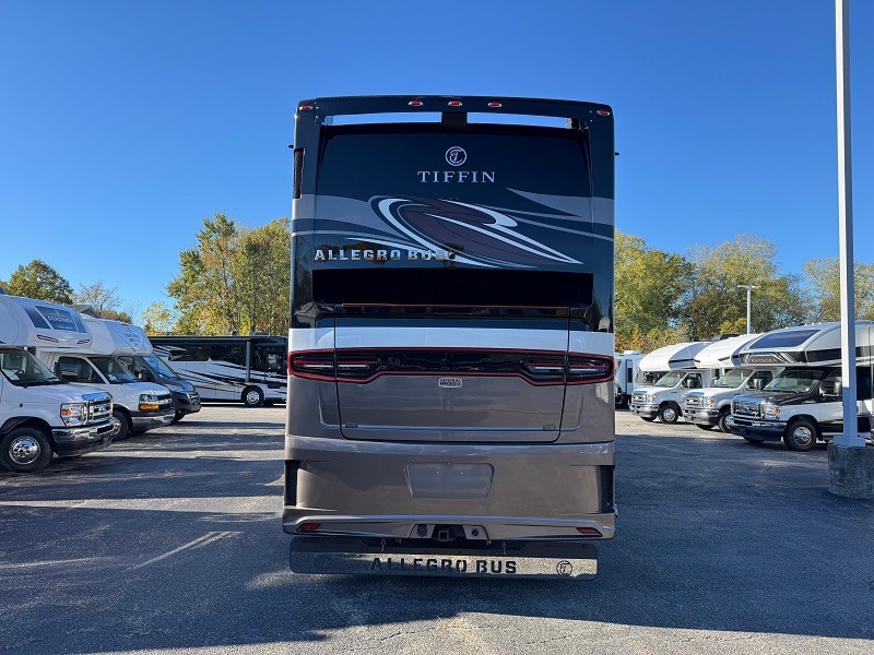 With any Allegro Bus Class A diesel coaches by Tiffin Motorhomes you will experience ultimate luxury, breakthrough technology, and unmatched power thanks to the 450 HP Cummins L9 engine. Each model sits upon a PowerGlide rear engine diesel chassis for a smooth ride, and you are sure to turn heads with the premium paint system. The captain's job is made easier than ever with the adaptive cruise control, the collision mitigation with forward warning and active braking, and the Valid LCD instrument cluster display with integrated leveling controls. This all-electric coach features an integrated roof-mounted Girard patio awning, an Onan 10.0 kW generator, and a hydronic heating system to name a few amenities. Inside, you'll love the polished solid surface countertops, the upscale appliances, and the Ultraleather furniture for all-around comfort.
