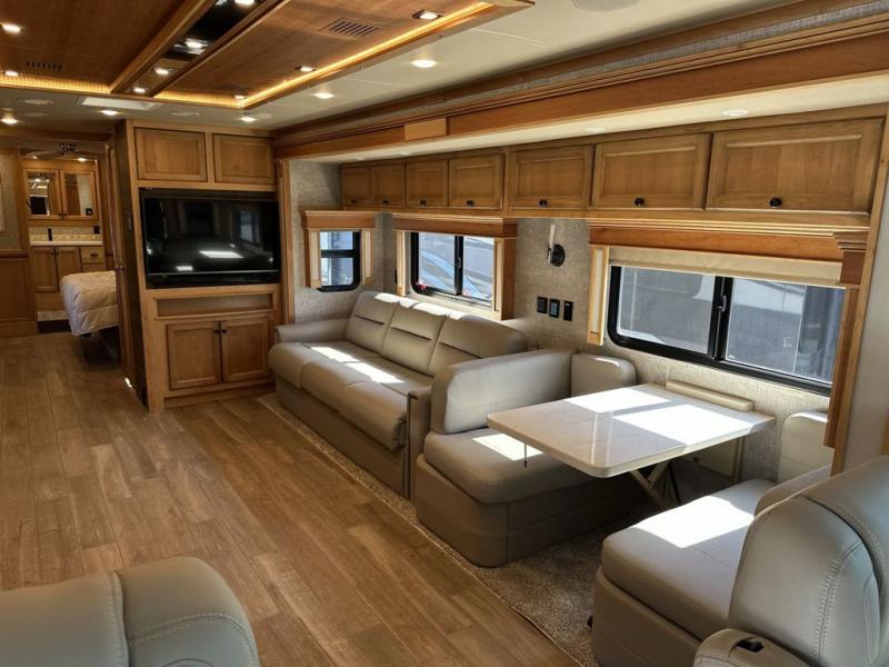 If you want the top of the line, the most luxurious, and the highest standard, the Tiffin Motorhomes Allegro RED 360 Class A diesel motorhome is created for you! You will have air ride suspension, full air brakes, electronic stability control, and hydraulic automatic leveling jacks as some of the chassis features, and there are many electrical features that will catch your eye, like the Truma gas continuous water heater, digital TV antenna, Extraordinaire A/C system, external tripod satellite hook-up, and Spyder multiplex controls with app compatibility. And that is only a fraction of the many more features found on the Allegro RED 360. While you're driving, you'll have a color back-up monitor to help you maneuver into parking spots, and you have the ability to add an optional central vacuum, stacked washer/dryer, Gold Heat heated tile floor, and in-dash navigation system, just to name a few of the many options.