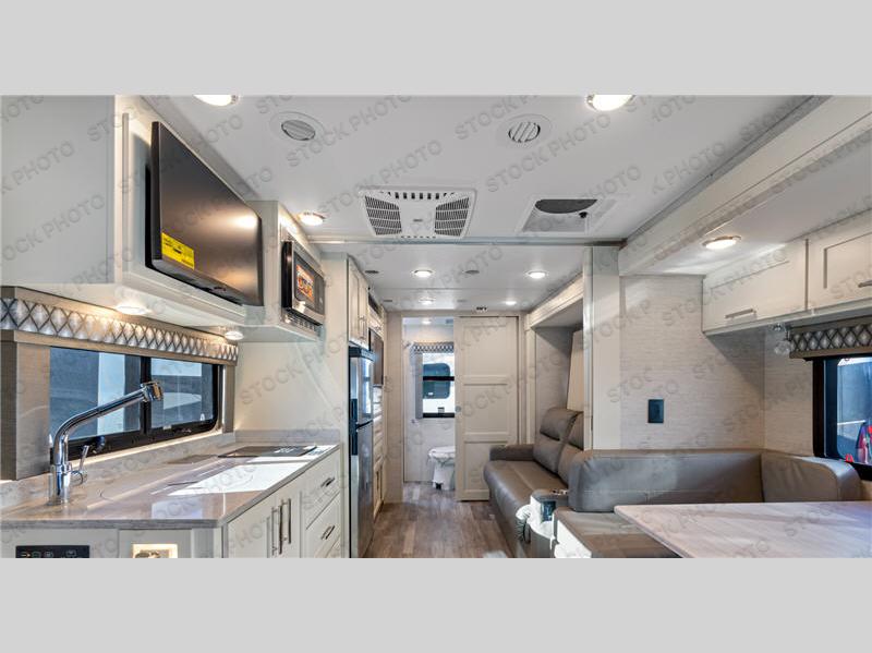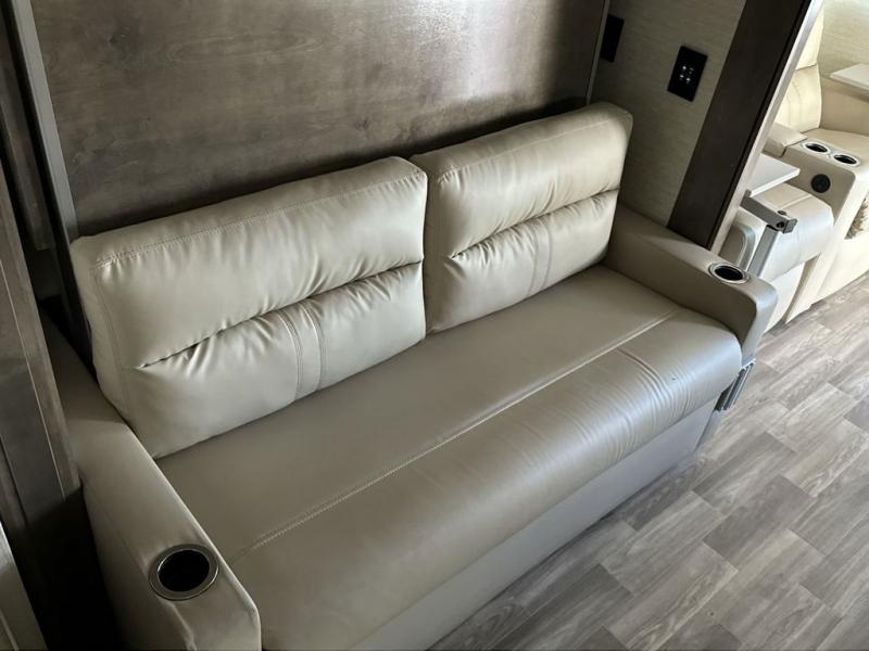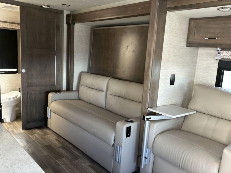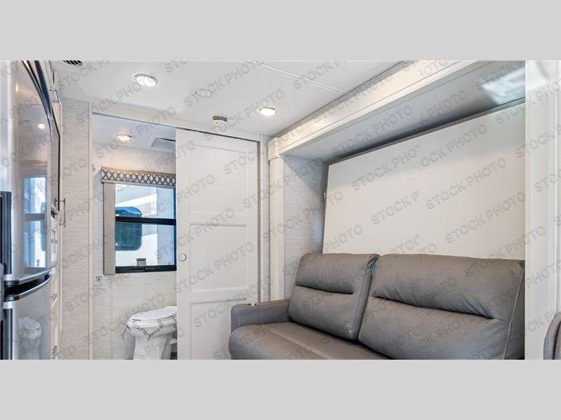 Travel with your favorite person, your family, or a some friends to see nature along the highways, up close and where ever the road takes you! You will find sleeping space for five with the bunk over the cab, the booth dinette, and the versatile queen Murphy bed and sofa combo! You can watch the 32" TV while the cook makes dinner using the convection microwave or cooktop, and the 12V 6.5 cu. ft. refrigerator can hold the cold items. The rear full bathroom gives you privacy and the sliding door saves space. You might like to add a few options to customize your coach such as optional reclining theater seating, or a tri-fold sofa in place of the dinette, a central vacuum system, an overhead entertainment center in place of the bunk, and/or an exterior TV to enjoy under the awning.