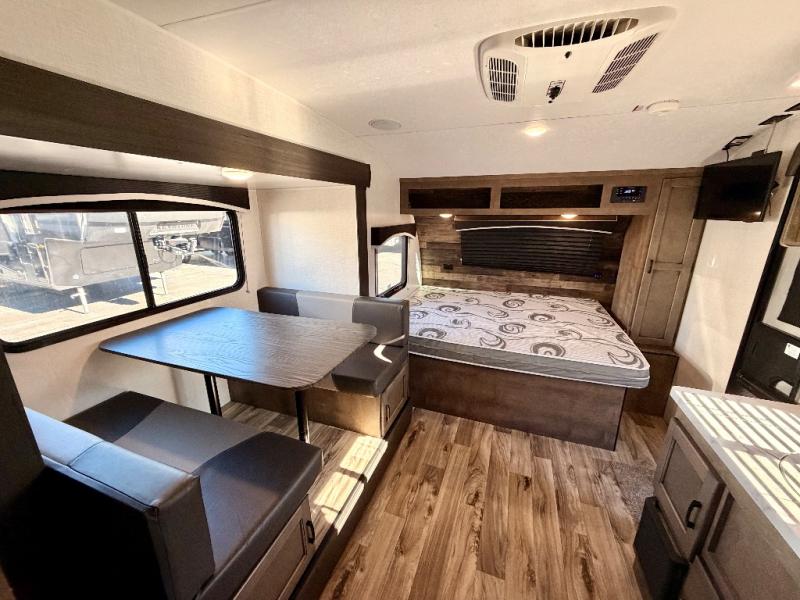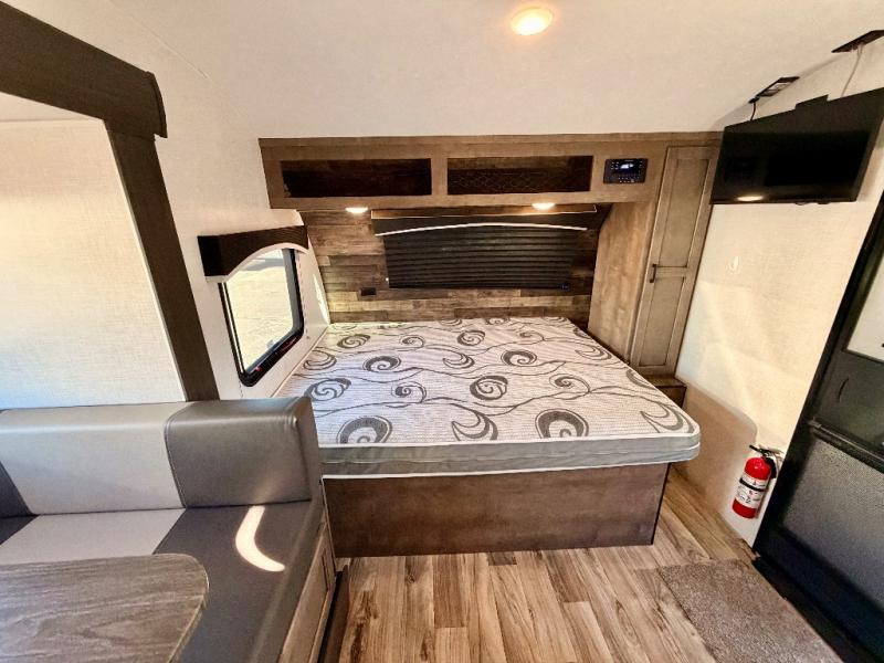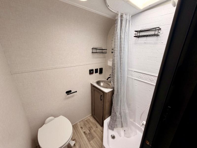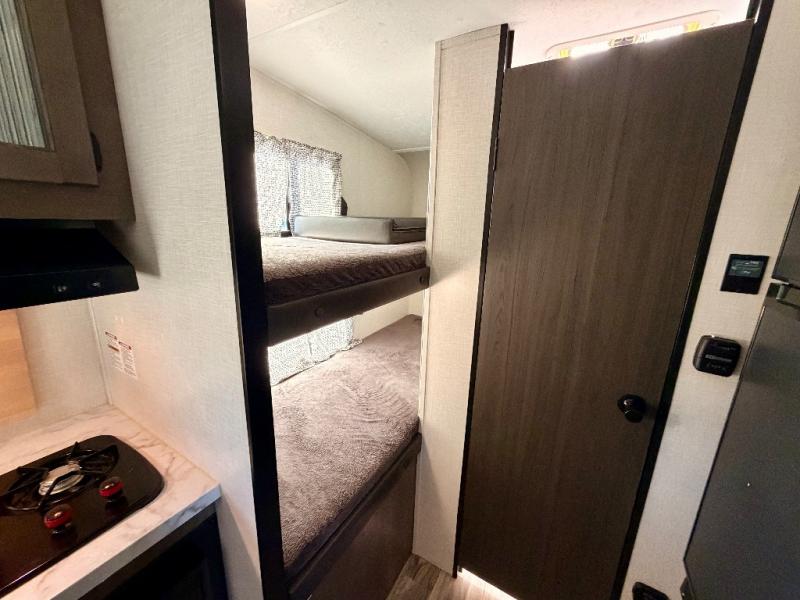 Looking for a family-friendly trailer that is easy to tow, sleeps six and includes a slide for more interior floor space? Step inside using the flip-up solid steps for safety into this Sonic Lite to find a 60" x 75" bed up front with a handy StorMore bedside nightstand with a 110V outlet and USB charging to keep your cellphones at 100%, plus an overhead cabinet for more things. You will love that the rear set of bunk beds is located next to the full bathroom which is helpful at night for the kiddos. You can make meals using the galley kitchen which includes an 8 cu. ft. refrigerator and a convection microwave or use the campfire cafe outside, and dine inside at the booth dinette or outside under the 13' power awning.