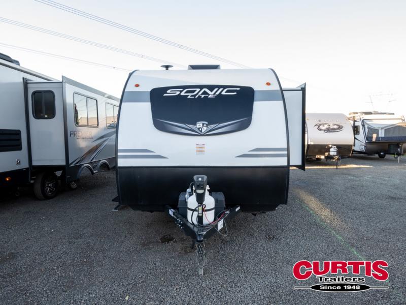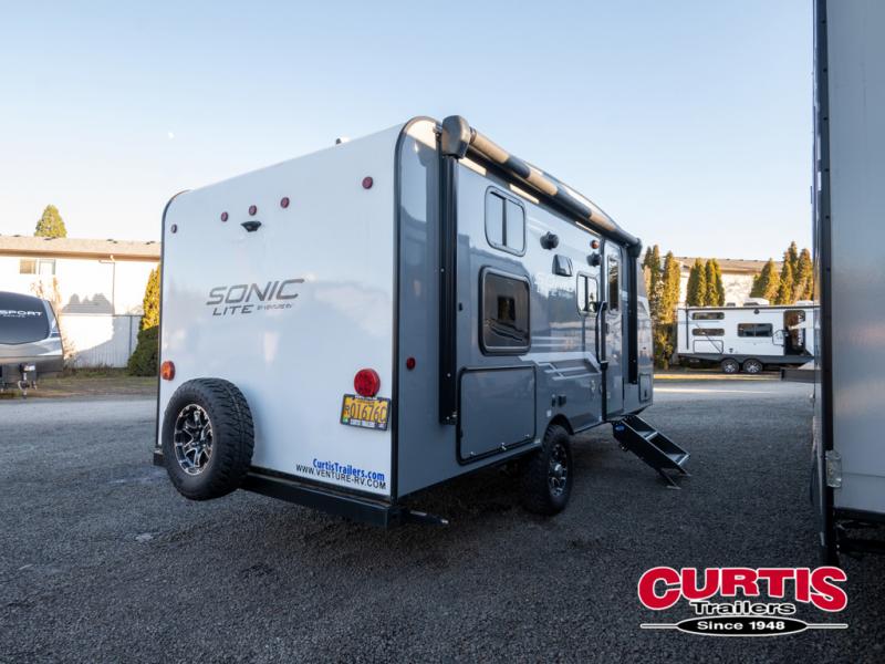 With any Sonic Lite travel trailer by Venture RV, you begin with Next Generation in RV frame technology with the NXG frame, AZDEL Onboard composite panels, tongue and groove plywood floor decking, and a tucked rear bumper. The Blast Package 1.3 provides a motion light in the bathroom, a deep round stainless steel sink with cover in the kitchen, and the Venture LevelMate Pro which allows you to use smartphone technology to level the RV, plus a lighted power tongue jack, and WIFI prep to mention a few features. Get ready for comfort and style in a Sonic Lite ultra-lightweight, single-axle travel trailer of your choice!