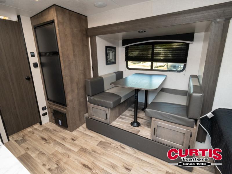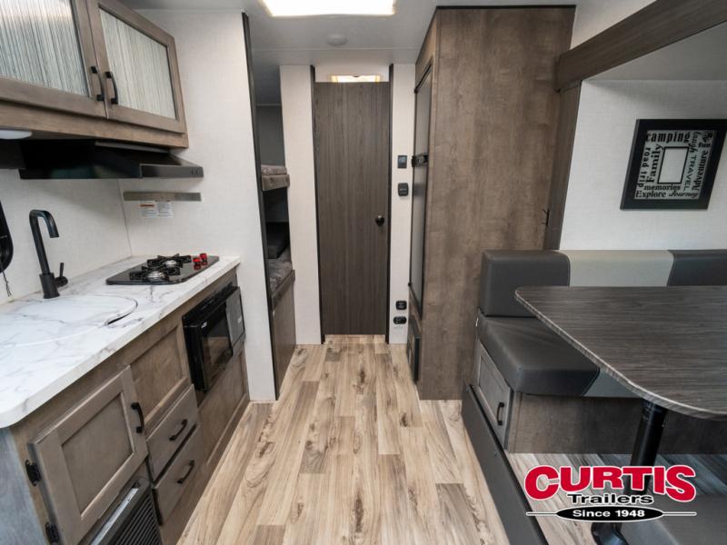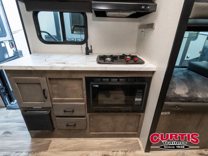 Looking for a family-friendly trailer that is easy to tow, sleeps six and includes a slide for more interior floor space? Step inside using the flip-up solid steps for safety into this Sonic Lite to find a 60" x 75" bed up front with a handy StorMore bedside nightstand with a 110V outlet and USB charging to keep your cellphones at 100%, plus an overhead cabinet for more things. You will love that the rear set of bunk beds is located next to the full bathroom which is helpful at night for the kiddos. You can make meals using the galley kitchen which includes an 8 cu. ft. refrigerator and a convection microwave or use the campfire cafe outside, and dine inside at the booth dinette or outside under the 13' power awning.