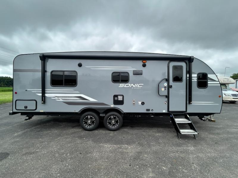 With any Sonic travel trailer by Venture RV, you begin with Next Generation in RV frame technology with the NXG Huck-bolt frame, AZDEL Onboard composite panels, tongue and groove plywood floor decking, radiant foil bubble insulation-wrapped tanks, 360-degree residential fiberglass insulation and radiant foil insulation, plus a forced-air heated and enclosed underbelly which is part of the Weather-Shield package. There is a Highway Package that comes mandatory, and the Discovery Package 1.3 provides a motion light in the bathroom, a dish drying sink cover, and the Venture LevelMate Pro, a power tongue jack, and WIFI prep to mention a few features. Get ready for comfort and style in a Sonic ultra-lightweight, tandem-axle travel trailer of your choice!