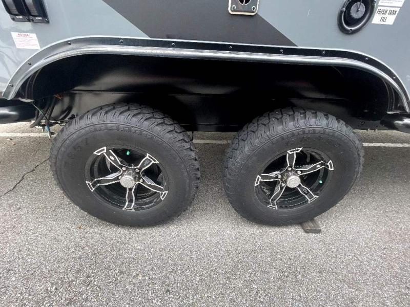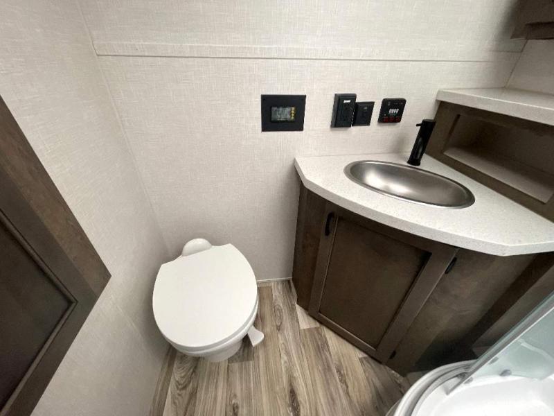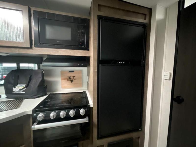 Each one of these ultimate self-sustainable Venture RV Sonic X travel trailers have been built to go off-road and off-grid for an off-the-charts adventure! The 7 1/2" BAL Norco NXG huck-bolt frame and spread axles with auto-adjust brakes and EZ lube hubs will endure every adventure you throw their way. A forced-air heated and enclosed underbelly, a 360 degree residential fiberglass insulation, and radiant foil bubble insulation wrapped tanks mean you can camp into the cooler months without damaging your unit. With the standard Sonic Xtreme Storage System package, you can store your fishing pole or gun in the concealed cabinet, strap in your bike to the hitch-mounted bike rack, and utilize the garage storage system. Pop a bag of popcorn with the stainless steel microwave for movie night, enjoy plenty of head space with the 82" interior height, and have an easy time cleaning the Beauflor residential linoleum. Come find the right model for you!
