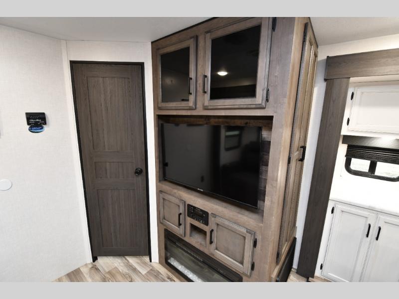 This pre-owned 2024 Venture RV SportTrek ST327VIK is built for families who want space, comfort, and standout outdoor features that elevate every camping trip. Two 10' legless awnings with wind sensors provide reliable coverage rain or shine, while the Campfire Café creates an unbeatable outdoor hangout with a built-in griddle and an exterior TV—perfect for game days, cookouts, or relaxed evenings at camp. Inside, the main living area offers a comfortable sofa, booth dinette, and an entertainment center with a fireplace and swing-arm TV, making it easy to gather and unwind after a day outdoors.