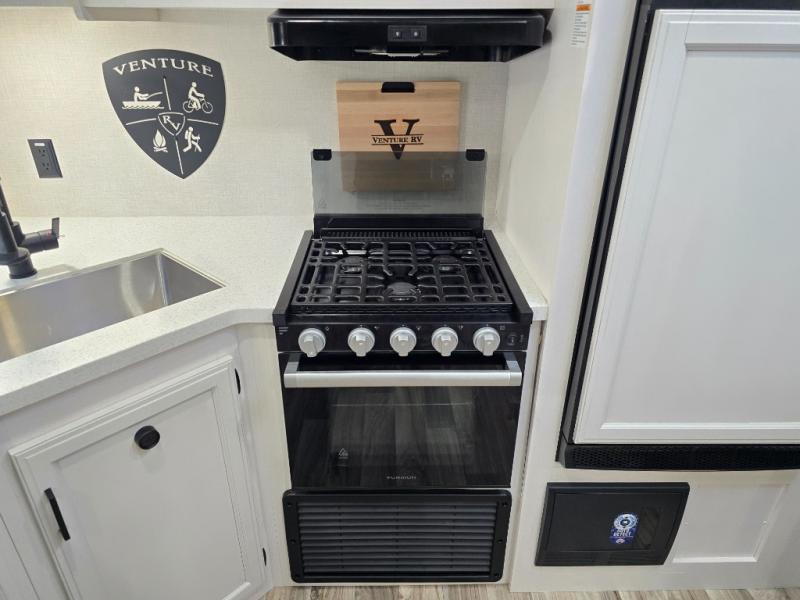 An elegant design and new features come with every one of these Venture RV SportTrek Touring Edition travel trailers! The NXG Huck bolt frame holds these units together and a walkable roof covers them. Heads will turn down the highway and at the campsite with an upgraded graphics package and a painted fiberglass front cap with integrated LED light. The exterior pass-through storage area has slam latch baggage doors with magnetic catches so you don't have to worry about them closing on you and a motion activated light to see your items clearly even at night. Luxury abounds throughout these units, especially with the mandatory Interior Luxury package which comes with solid surface kitchen countertops, designer valances with fabric nightshades, two 30" frameless fireplaces, and Beauflor wood plank flooring that is easy to clean. Come find your favorite model today!
