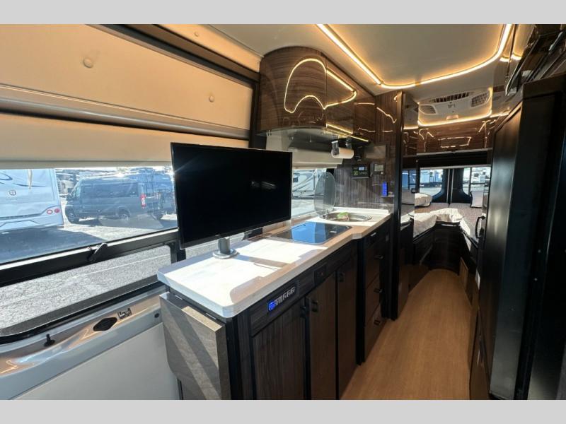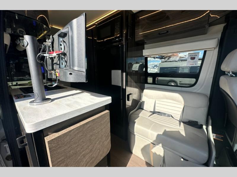 The innovative and dependable Era Class B diesel motorhome by Winnebago is feature-packed and ready for adventure. The multiplex wiring puts you in control of your units functions such as, lights, awning, generator and tank levels, and can easily be accessed via Bluetooth with the Precision Plex app. Navigation is made hassle-free with the MBUX touchscreen multimedia infotainment center that also includes interactive voice interface, Wi-Fi hotspot and rear camera. The Ultraleather cab seats slide, swivel, and recline once you arrive at your destination to become a part of the living area, and there is a convenient removable pedestal table to enjoy your coffee at each morning. The Era also includes a Coleman Mach 10 NDQ A/C system and a Truma Combi Eco Plus heating system that will keep you comfortable year around.