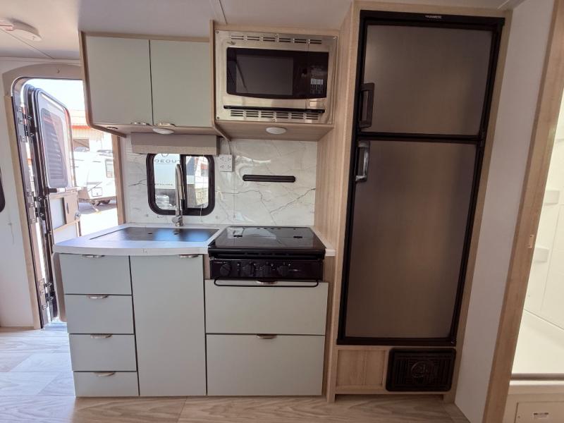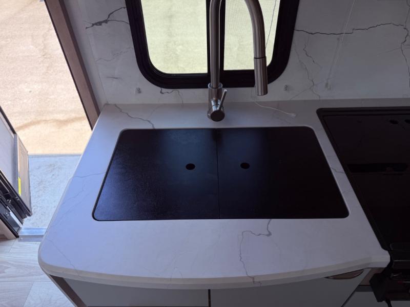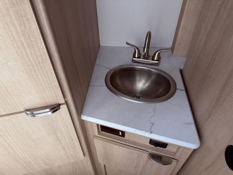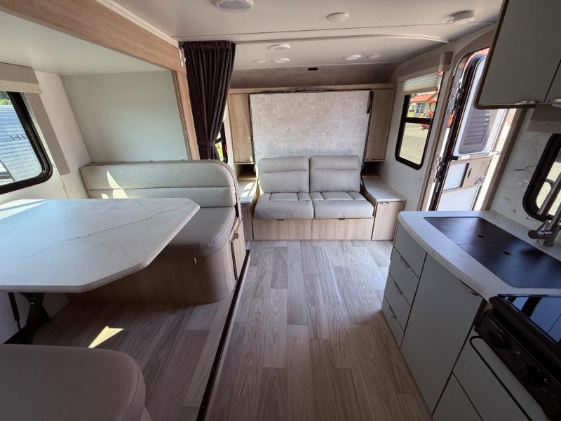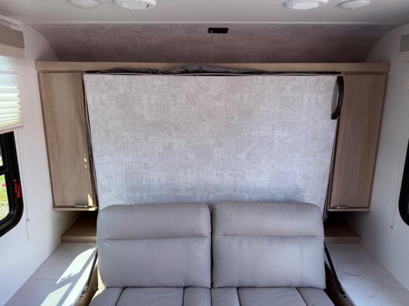 If you're looking for versatility then you need this travel trailer! Depending on the time of day you enter will determine whether you see the Murphy bed or the sofa up front. A slide out 44" x 72" booth dinette can be used for dining, playing games, and sleeping space at night. The full rear bathroom is equipped with everything you will need to freshen up each morning and features a wardrobe for your clothing and linens, and a pocket door into the bath saves space in the main room. The LED TV is conveniently located so you can watch your favorite shows from the sofa or Murphy bed as well as the dinette, plus the pantry offers a place to store your snacks and such for easy access. The cook in your bunch will love all the amenities to make meals including the handy flip-up counter for more prep space.