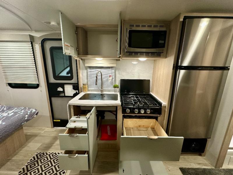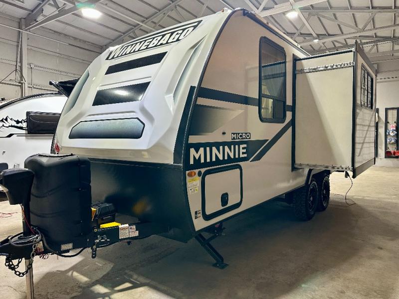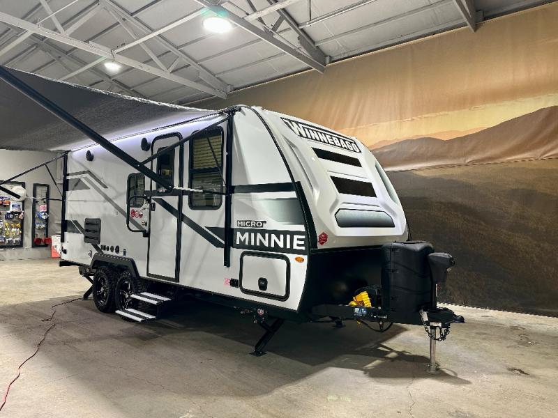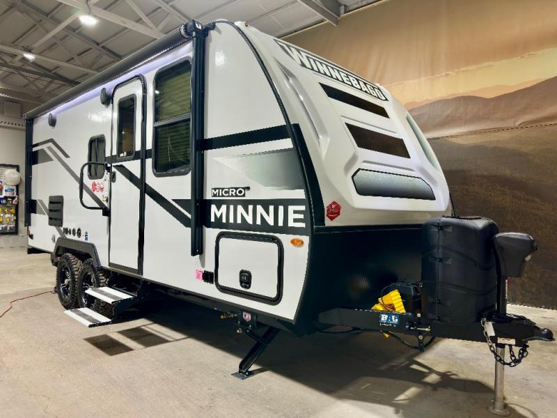 Start out on your boundless journey in one of these Winnebago Industries Towables Micro Minnie travel trailers! Towing is made simple with the 7' width to keep your Micro Minnie in your rear-view mirror. They don't lack in features either although they are compact in size. The spacious galley including a sink, refrigerator, two burner cooktop, and even a microwave oven allows you to cook without compromise. You will not only enjoy the entertainment found indoors with an LED TV, a JBL premium sound system and Aura Cube high performance mechless media center, but outdoors you will also enjoy the JBL premium speakers and a power awning with LED lighting. Each model also comes with flexible exterior storage to make packing quick and easy. What are you waiting for, come choose your model today!