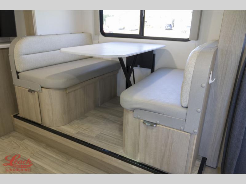 Load your kids into this travel trailer and experience a fun family getaway! The front Murphy bed offers versatile living by transforming into a 54" x 74" bed to sleep on at night and a sofa to sit on during the day. The 44" x 72" booth dinette slide is a great place to enjoy your meals, play games as a family, and even transform into an extra sleeping space if your kids want a friend to tag along. The kids will love sleeping on the rear corner 28" x 72" bunk beds and having the rear corner bathroom right next to them. As if that wasn't enough, there is an exterior pack-n-play door, a power awning with LED lighting, and patio speakers to crank up the tunes!