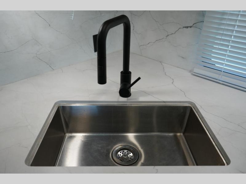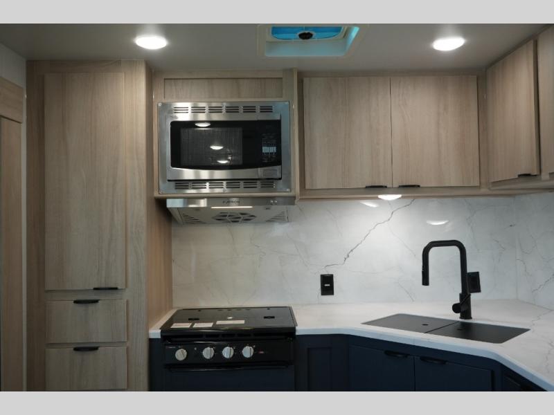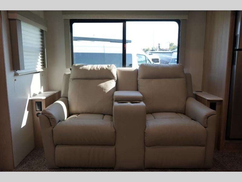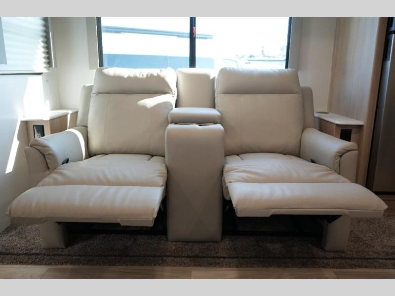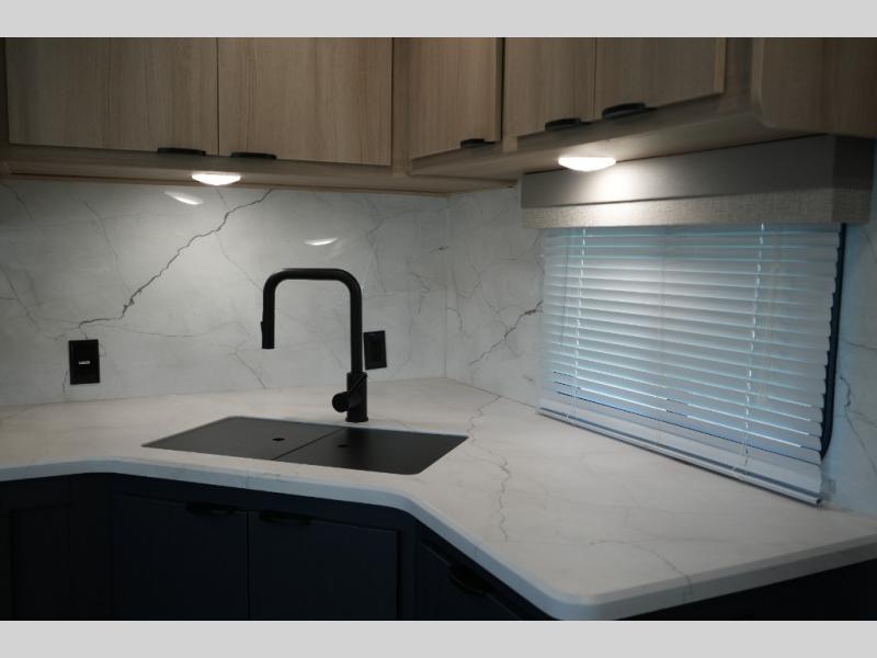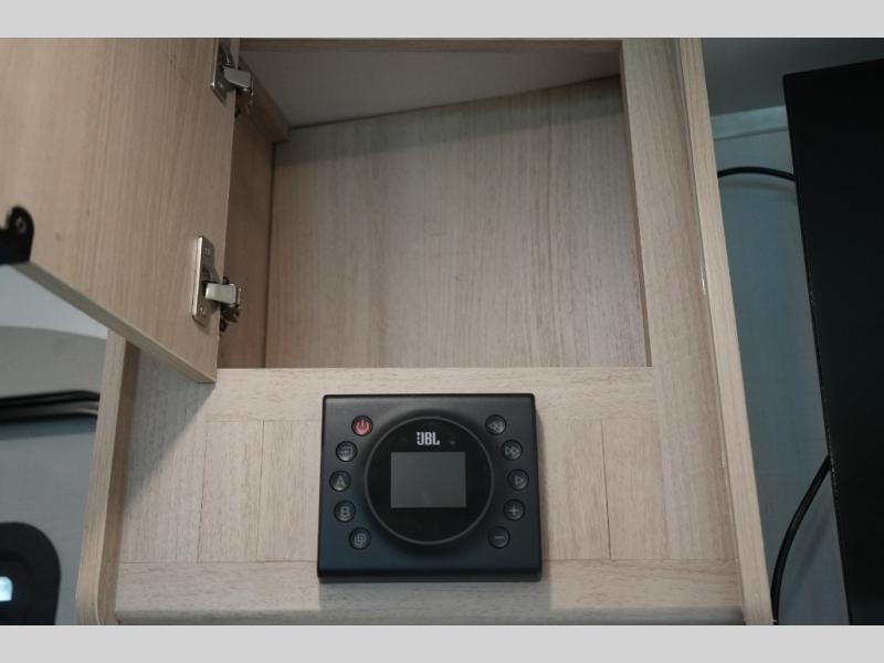 Luxury Inside & Out – Power stabilizer jacks, JBL exterior speakers, outdoor shower, and a 21’ power awning with LED lighting enhance your campsite experience.