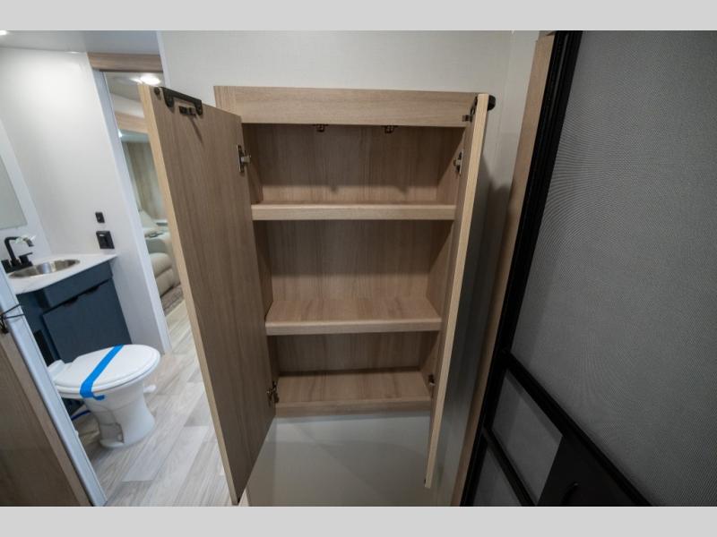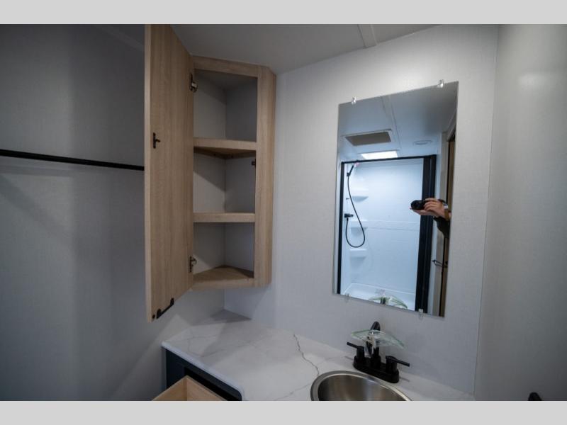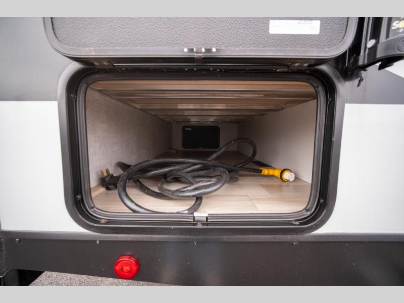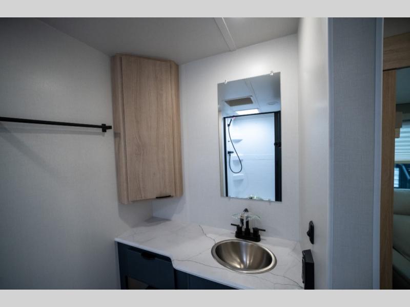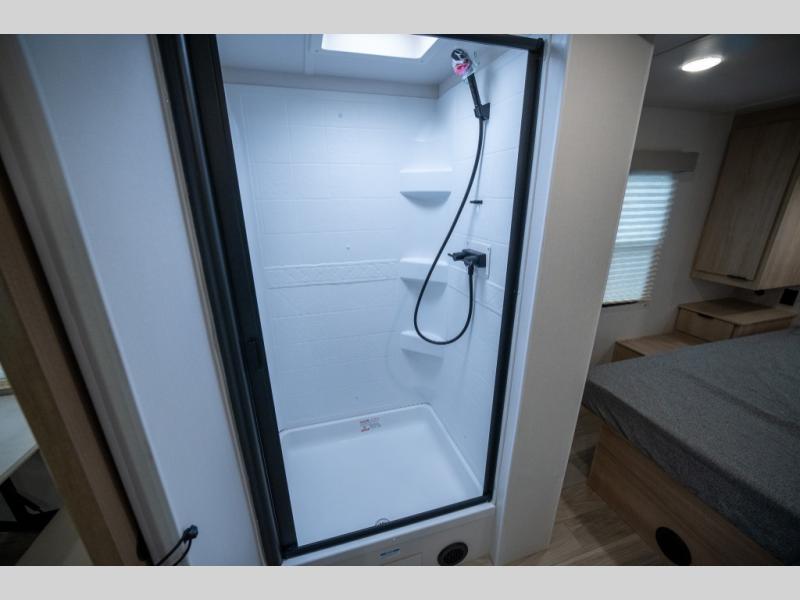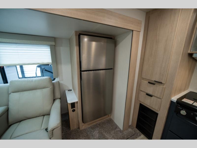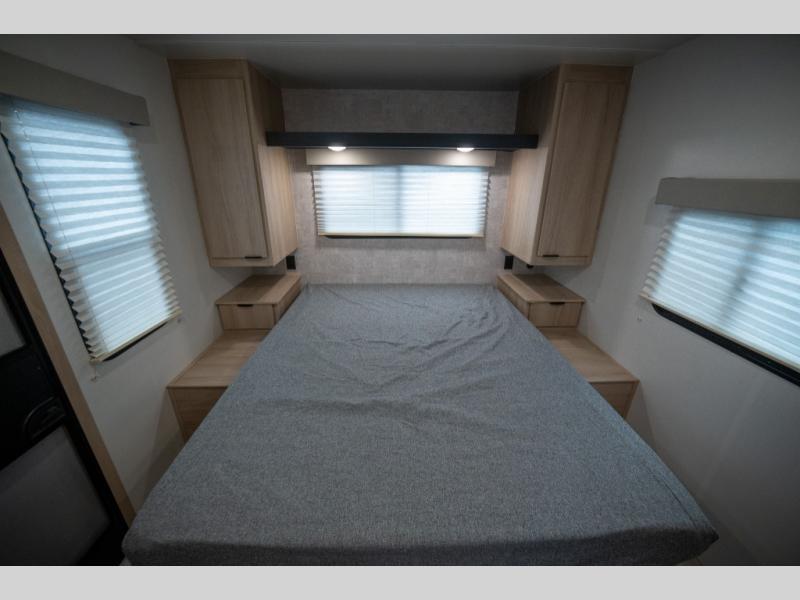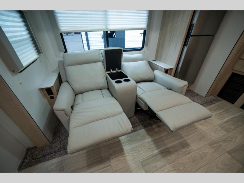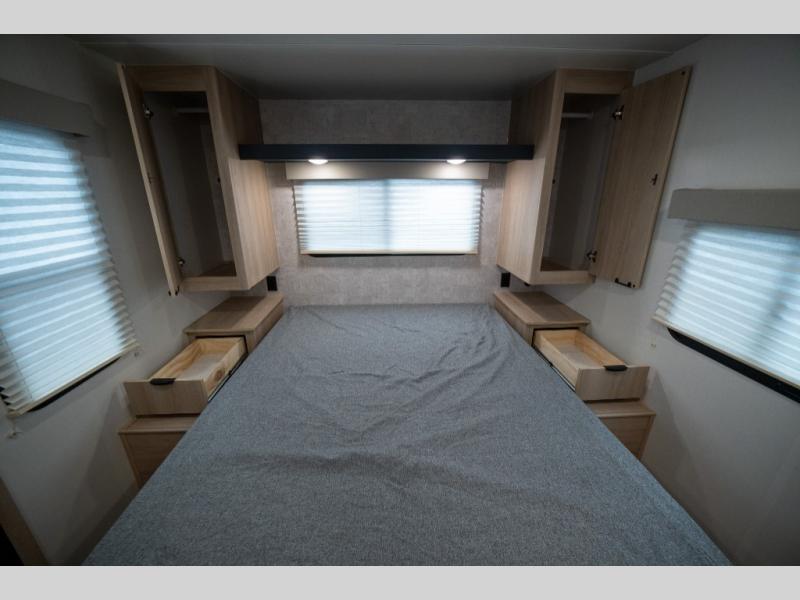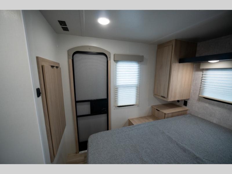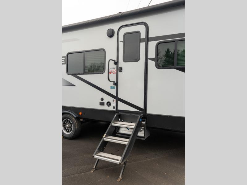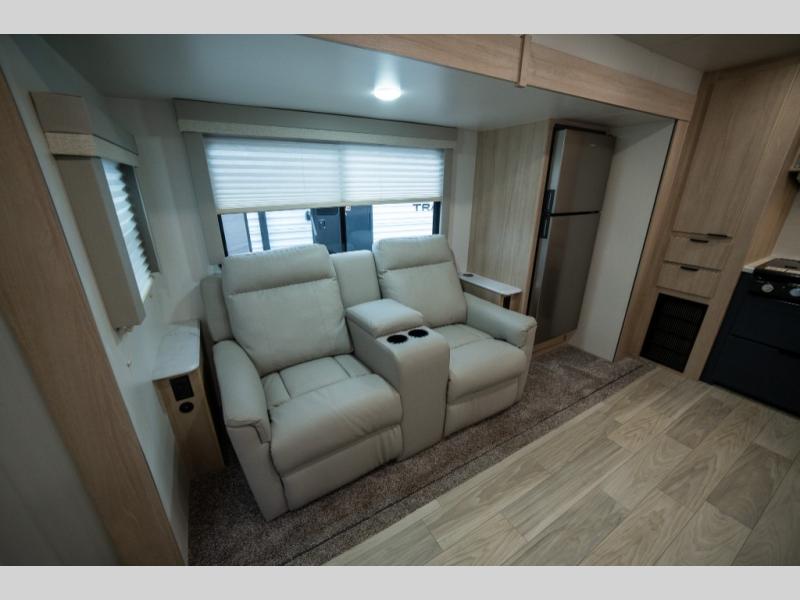 You're going to love this spacious travel trailer thanks to the tri-fold sofa slide out! There are convenient dual entry doors so you can enter in through the rear master bedroom or the front kitchen. The chef of your group is sure to appreciate ample counter space to prep meals, plus a pantry and 10.3 cu. ft. 12V refrigerator for food storage. Your crew can dine at the booth dinette or take your plate outdoors to sit under the 21' power awning with LED lights. Clean up in the walk-through bath before retreating to your queen bed in the rear bedroom, while your guests sleep on the furniture in the main living area!