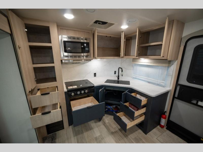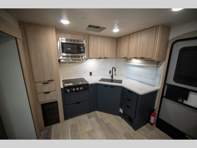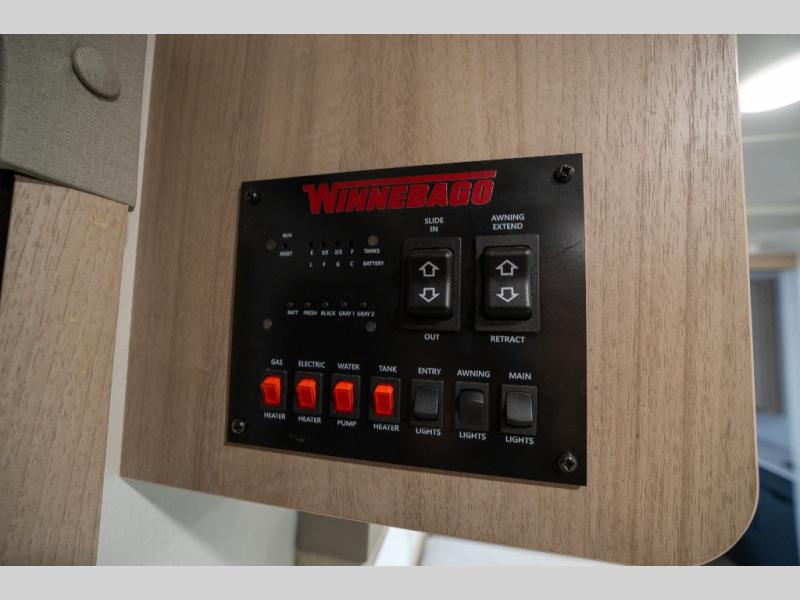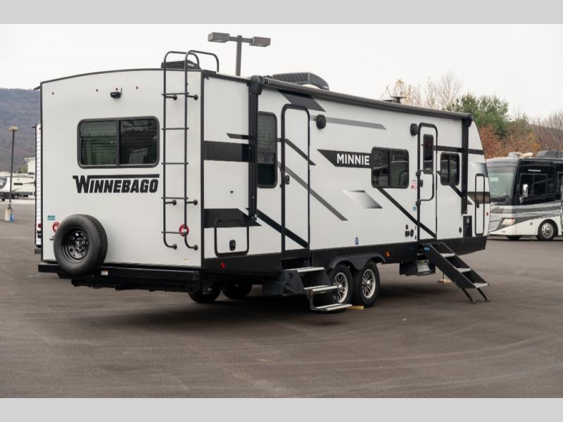 With any Minnie travel trailer by Winnebago Industries Towables, you'll be gaining an award-winning ticket to the good life! Lightweight towing is provided by the NXG engineered frame, and the Comfort Tech package will allow you to camp in all seasons with its enclosed underbelly, extreme weather radiant foil wrapping, and insulated heating ducts. Each model includes best-in-class exterior storage with up to 44 cu. ft. for all your camp gear, plus innovative interior storage for your belongings. You'll also find power stabilizer jacks outside, along with premium JBL speakers, an outdoor shower, a campside spray port, plus many more convenient features. The 200-watt solar panel will be perfect for some off-grid camping, and the Winnebago all-in-one control panel will allow you to control all of your units functions in one easy location. Head indoors to enjoy the full-overlay European style cabinetry and modern Cobalt decor, plus there are flexible furnishings, an open galley, and comfortable sleeping arrangements!