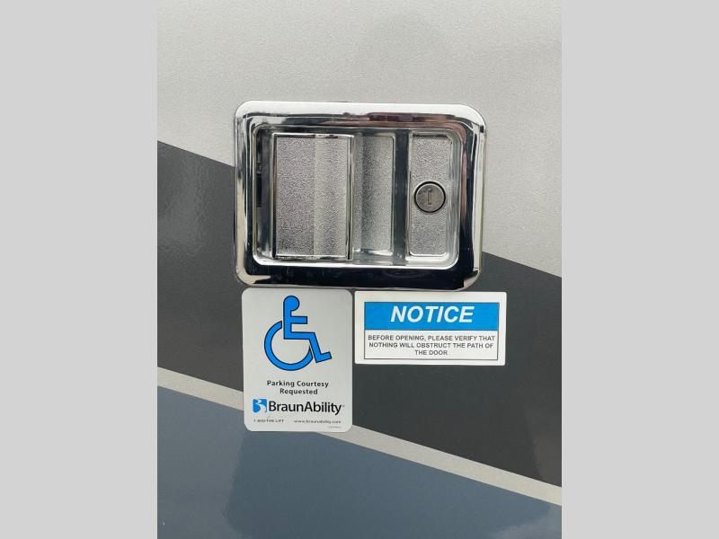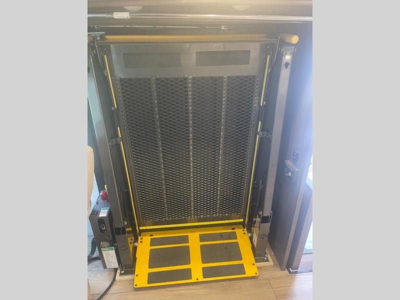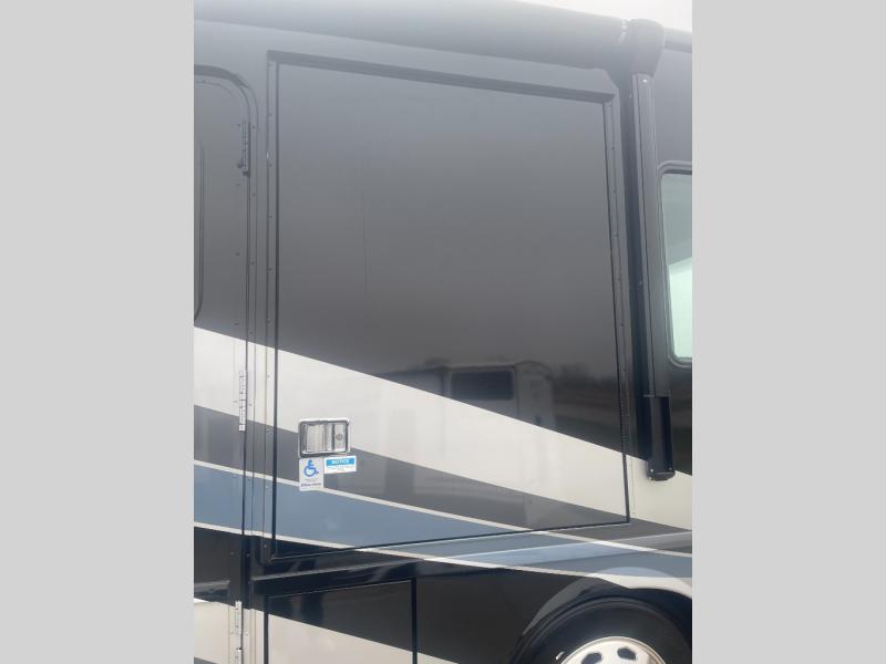 There are plenty of accessibility enhancements found on this Inspire Class A diesel motorhome! The large slides add extra space to the interior of this coach so that you can get around easily, and the modified bath walls and cabinetry provide additional convenience. The roll-in shower with wrap-around curtain and assist bar is going to make your morning routine flow much more smoothly so that you can get out to the kitchen sooner to grab some breakfast from the residential refrigerator. The private bedroom has a large wardrobe and a large nightstand, and it even has a 32" HDTV so that you can sit up in bed to watch a show before you fall asleep. Plus, the washer and dryer are definitely going to enhance each of your journeys.