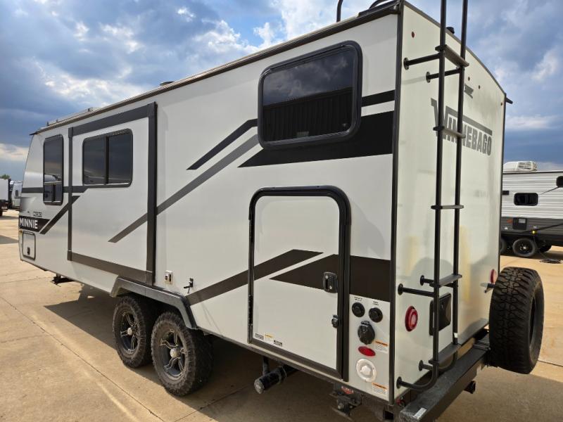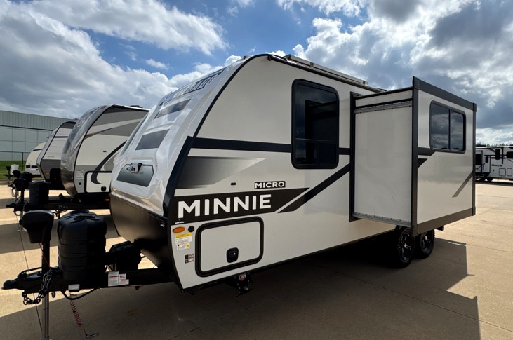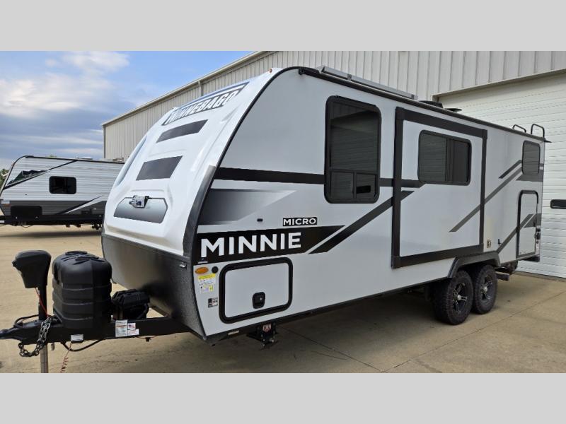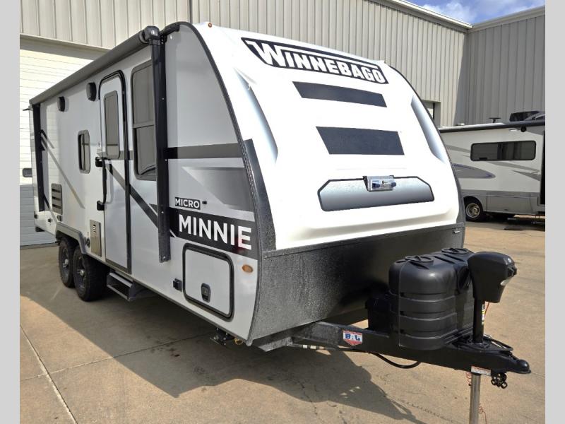 Start out on your boundless journey in one of these Winnebago Industries Towables Micro Minnie travel trailers! Towing is made simple with the 7' width to keep your Micro Minnie in your rear-view mirror. They don't lack in features either although they are compact in size. The spacious galley including a sink, refrigerator, two burner cooktop, and even a microwave oven allows you to cook without compromise. You will not only enjoy the entertainment found indoors with an LED TV, a JBL premium sound system and Aura Cube high performance mechless media center, but outdoors you will also enjoy the JBL premium speakers and a power awning with LED lighting. Each model also comes with flexible exterior storage to make packing quick and easy. What are you waiting for, come choose your model today!