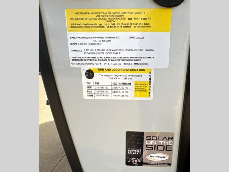Used 2023 Winnebago Micro Minnie 2306BHS Travel Trailer