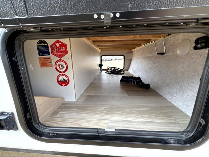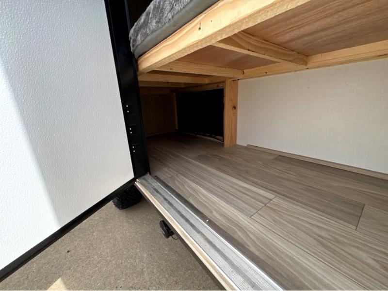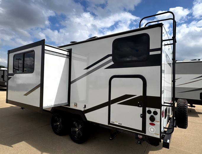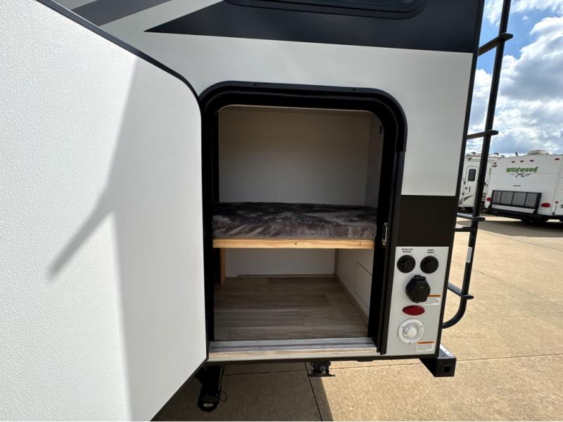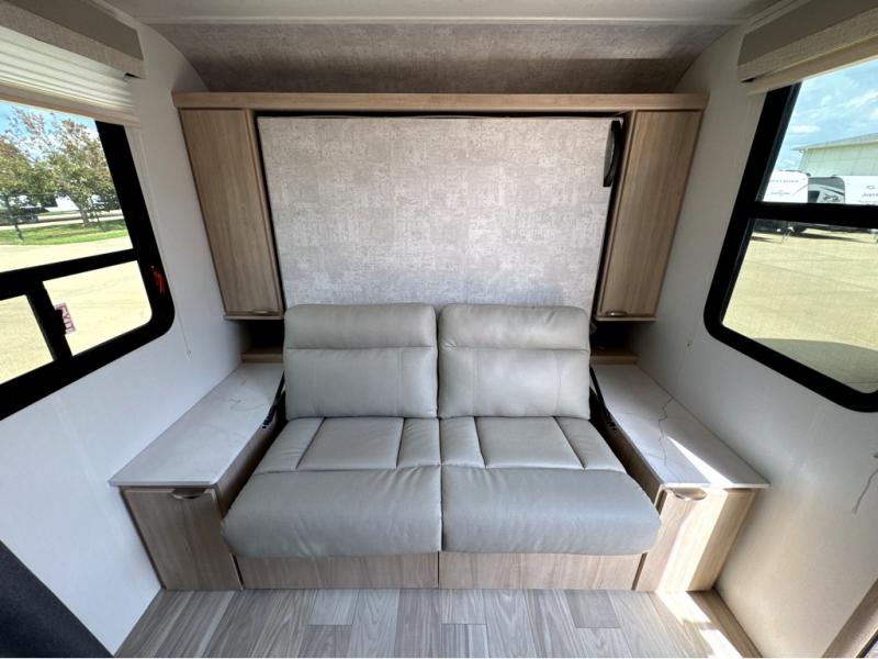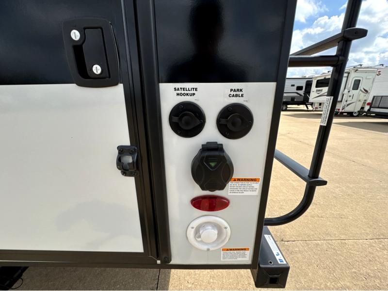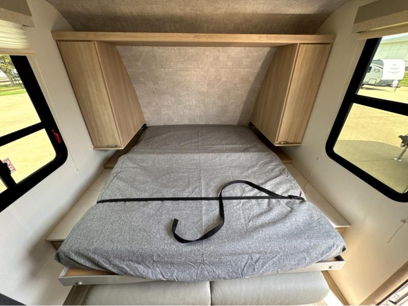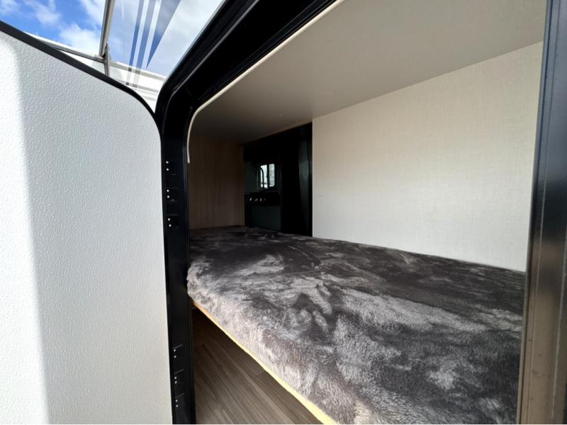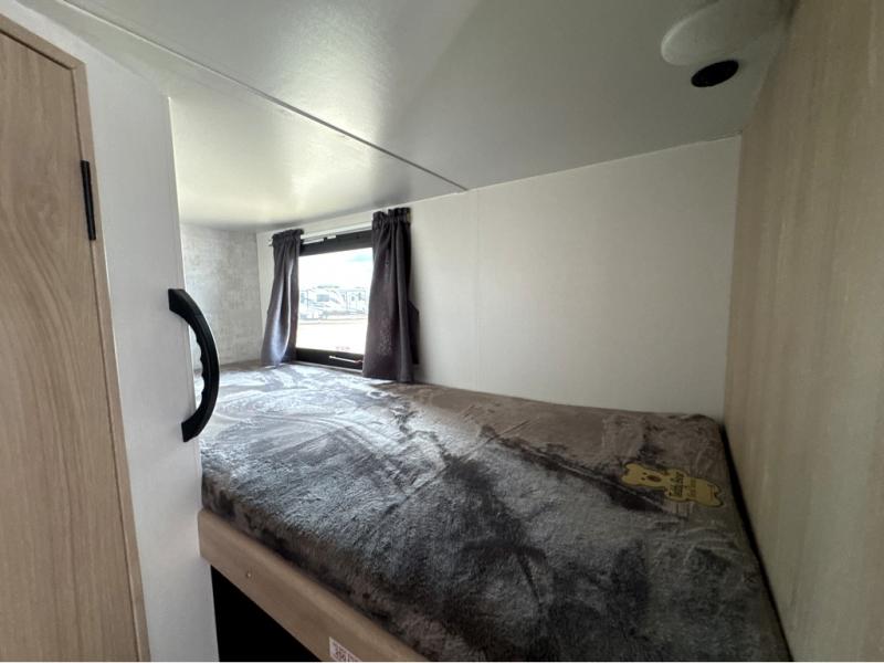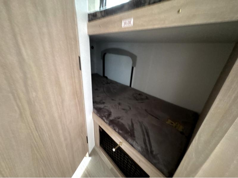 Load your kids into this travel trailer and experience a fun family getaway! The front Murphy bed offers versatile living by transforming into a 54" x 74" bed to sleep on at night and a sofa to sit on during the day. The 44" x 72" booth dinette slide is a great place to enjoy your meals, play games as a family, and even transform into an extra sleeping space if your kids want a friend to tag along. The kids will love sleeping on the rear corner 28" x 72" bunk beds and having the rear corner bathroom right next to them. As if that wasn't enough, there is an exterior pack-n-play door, a power awning with LED lighting, and patio speakers to crank up the tunes!