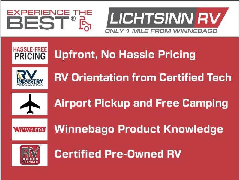 At Lichtsinn RV our website has full video walkarounds on each RV, making it easy for you to purchase. On our website you can go for a virtual test drive, purchase your RV over the phone or the internet, and then take delivery at our dealership, which is only 1 Mile from the Winnebago Motorhome Factory in Forest City, Iowa!