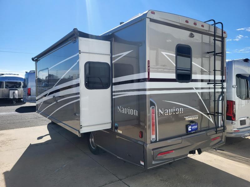 With the Winnebago Navion Class C diesel motorhome, campsite setup is made easier with a powered patio awning with LED lights and Bluetooth control that you can control with a smartphone app, a slide out that is easily moved outward with a push of a button, and your sleeping accommodations are flexible with your activities. The Mercedes-Benz Sprinter chassis, the turbo-diesel engine, the Adaptive ESP technology and the hydraulic brakes with ABS, are a few reasons you will love driving this coach anywhere, plus all the cab conveniences. The interior offers laminate countertops and vinyl flooring throughout for easy care, cabinets with accent lighting, toe kick lighting to help when your hands are full, and charging stations for your electronics. Choose a quieter, more comfortable ride with the SuperShell sleeper deck, and start making plans for years of traveling in your own Navion!
