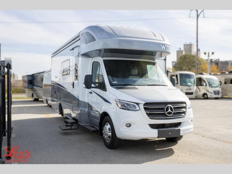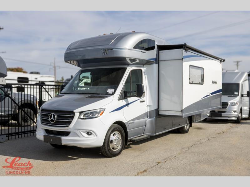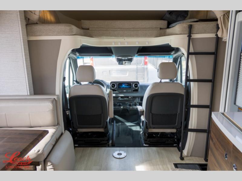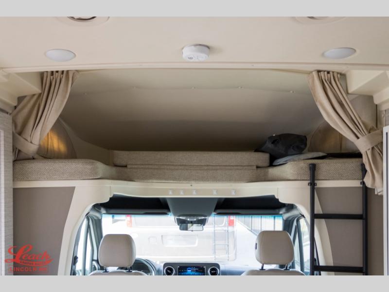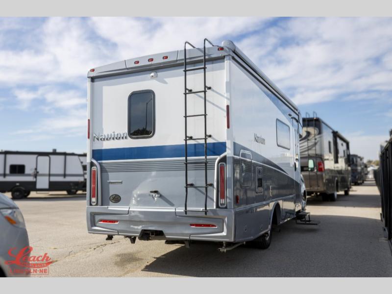 With the Winnebago Navion Class C diesel motorhome, campsite setup is made easier with a powered patio awning with LED lights and Bluetooth control that you can control with a smartphone app, a slide out that is easily moved outward with a push of a button, and your sleeping accommodations are flexible with your activities. The Mercedes-Benz Sprinter chassis, the turbo-diesel engine, the Adaptive ESP technology and the hydraulic brakes with ABS, are a few reasons you will love driving this coach anywhere, plus all the cab conveniences. The interior offers laminate countertops and vinyl flooring throughout for easy care, cabinets with accent lighting, toe kick lighting to help when your hands are full, and charging stations for your electronics. Choose a quieter, more comfortable ride with the SuperShell sleeper deck, and start making plans for years of traveling in your own Navion!