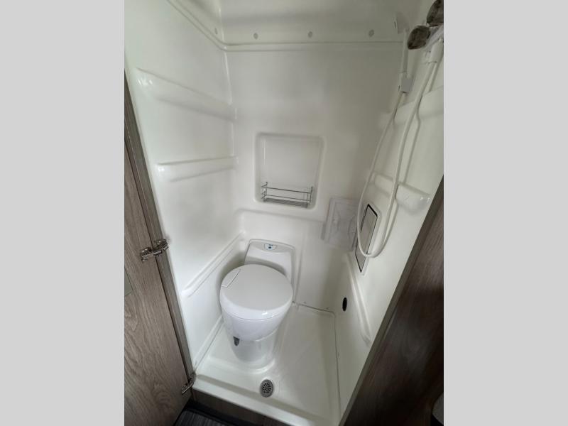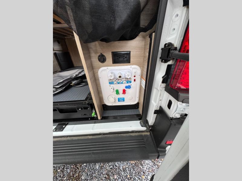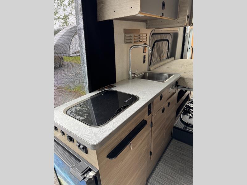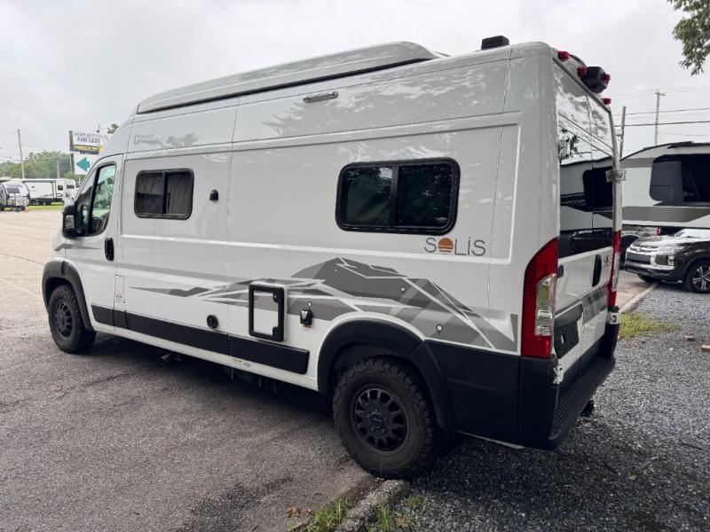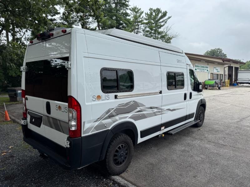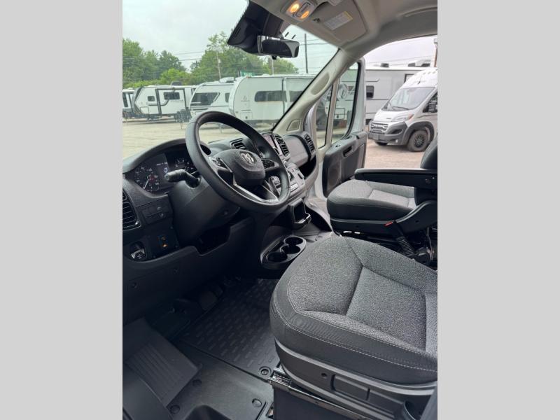 Each Solis Class B gas motorhome by Winnebago sits upon a fuel-efficient Ram ProMaster chassis with a 3.6L V6 engine to power your adventures. You will love the cab conveniences that make each trip enjoyable, like the digital review mirror, the radio/review monitor system touchscreen, and the crosswind assist to keep you steady on the road. Some of the hassle-free amenities you will appreciate are the exterior wash station, the Eco-Hot water system, and the water center control panel located inside the right rear door. Head indoors to find heavy-duty vinyl flooring throughout, a laminate countertop and a stainless steel sink in the galley, plus tinted coach windows for added privacy. The Solis also features off-grid capabilities with its two deep-cycle Group 31 batteries and 220-watt flexible surface solar panel with a controller. Adventures awaits in the Solis Class B gas motorhome!