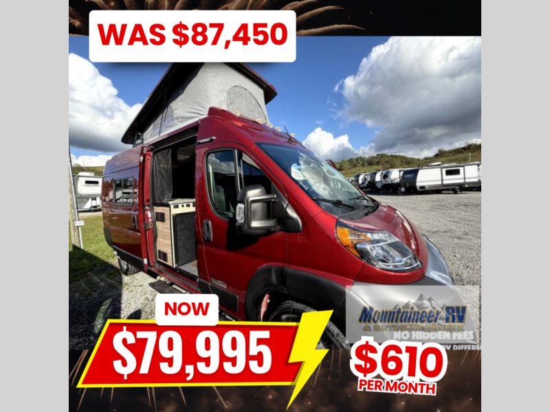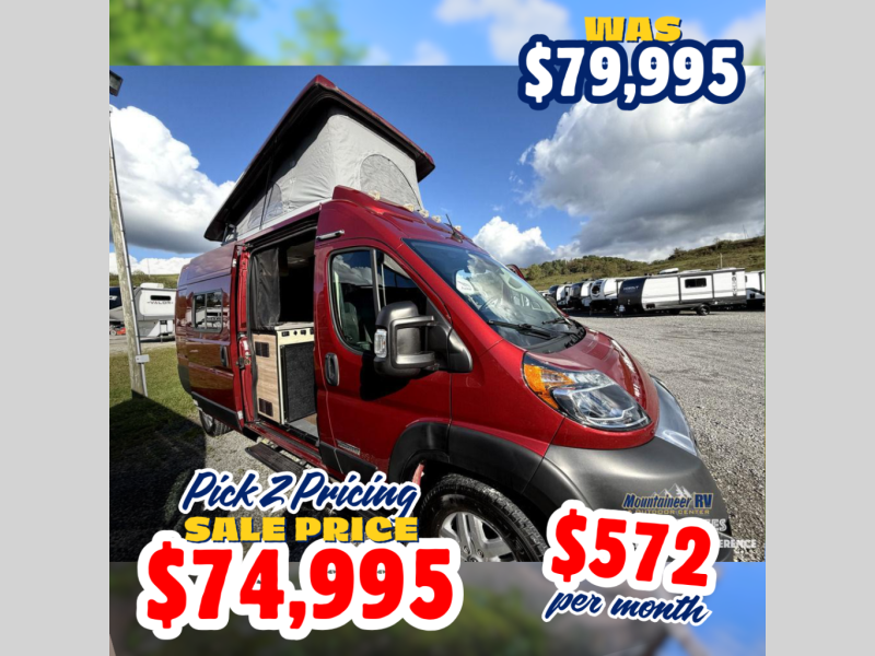 This camper van with an L-track storage system is perfect for those needing more storage space for their hiking and biking gear. You can stay powered up with the Cummins Onan QG 2800i gas generator, and there is a Coleman Mach 10NDQ A/C with directional vents that will allow you to come inside to cool off after a trail ride. A Murphy+ bed comes standard, or you can choose the optional sofa/bed, and any guests that tag along can sleep in the pop-top sleeping area! You'll find the wet bath to come in handy when you want to clean up, and the dinette seating with a removable pedestal table will provide a place to enjoy your dinner at.