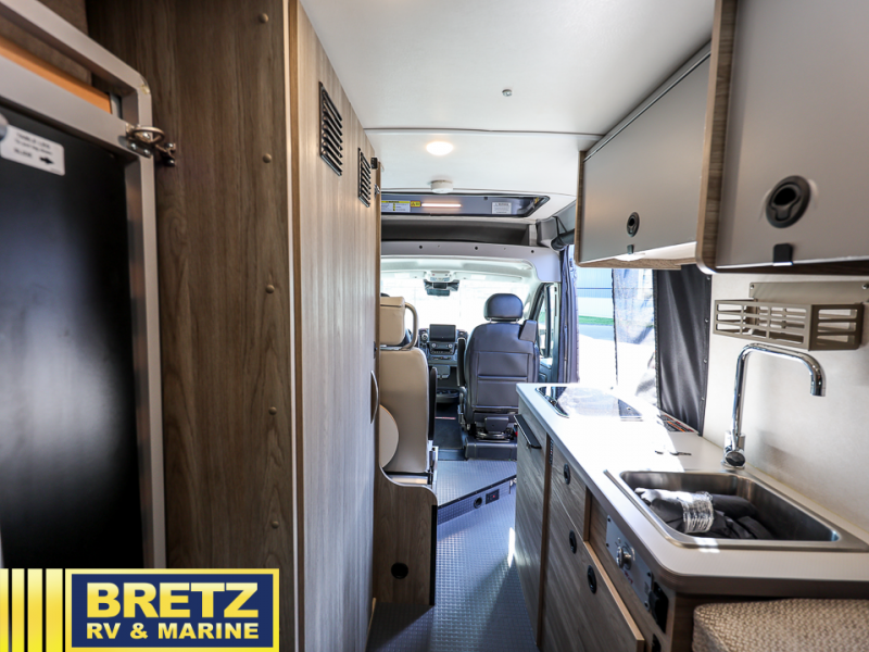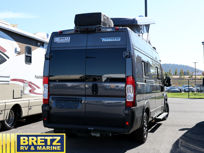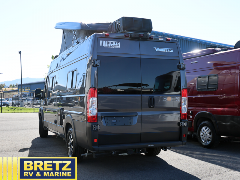 Each Solis Class B gas motorhome by Winnebago sits upon a fuel-efficient Ram ProMaster chassis with a 3.6L V6 engine to power your adventures. You will love the cab conveniences that make each trip enjoyable, like the digital review mirror, the radio/review monitor system touchscreen, and the crosswind assist to keep you steady on the road. Some of the hassle-free amenities you will appreciate are the exterior wash station, the Eco-Hot water system, and the water center control panel located inside the right rear door. Head indoors to find heavy-duty vinyl flooring throughout, a laminate countertop and a stainless steel sink in the galley, plus tinted coach windows for added privacy. The Solis also features off-grid capabilities with its two deep-cycle Group 31 batteries and 220-watt flexible surface solar panel with a controller. Adventures awaits in the Solis Class B gas motorhome!