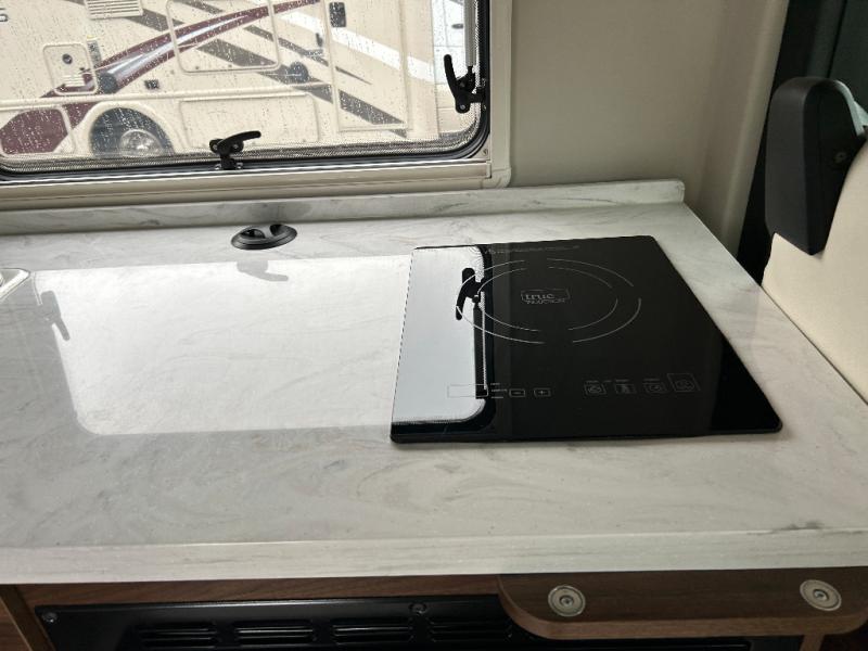 Don't pass up your chance to travel in true luxury with this motorhome! After a long day of traveling, you can rest up on one of the two twin beds which can be converted into a 74" x 76" bed with the flex bed system. Freshen up in the rear 25" x 43" wet bath with a fold down lavatory sink and a wardrobe to store your clothes and towels, plus sliding doors for privacy. You don't have to eat fast food while on the road either thanks to the single burner induction cooktop and single door 4.3 cu. ft. compressor-driven refrigerator/freezer, plus you have a flip-up countertop extension to make your meal prepping easier. The adjustable/removable table and mount makes it easy to eat your meals in different areas of the motorhome too!