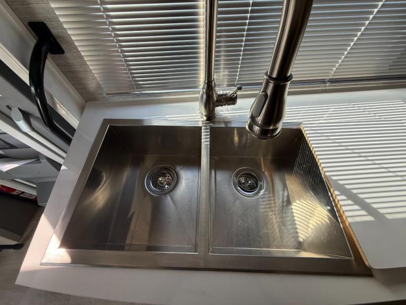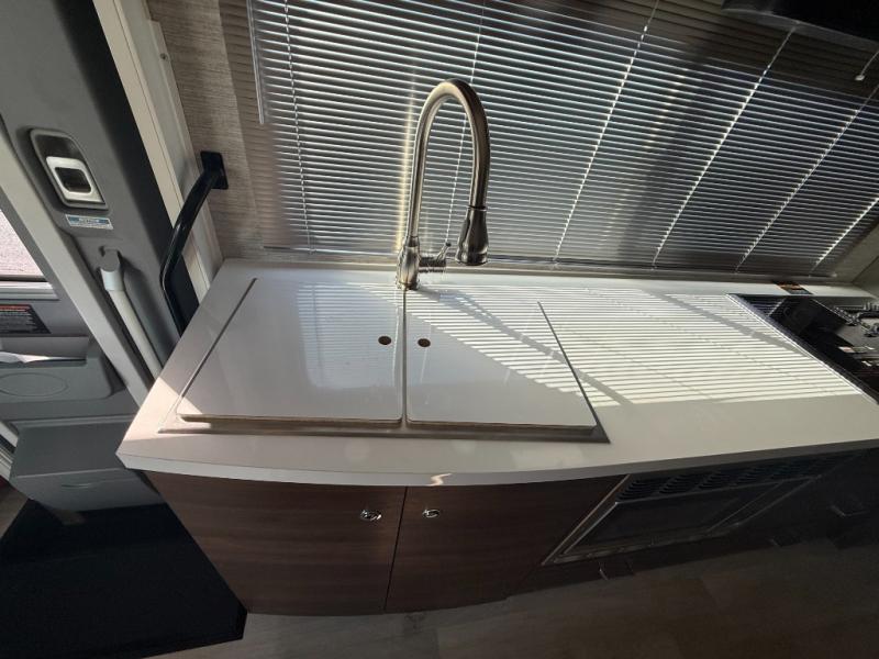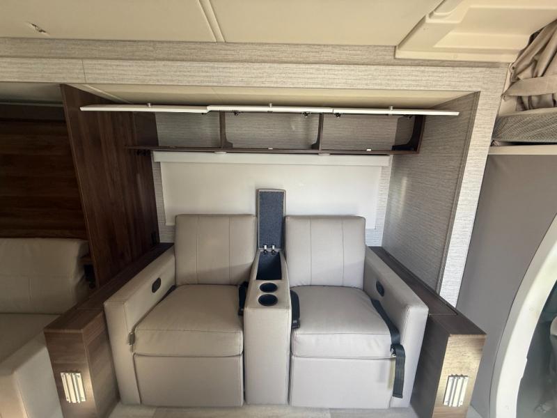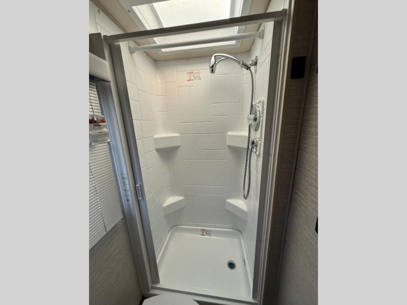 With each View Class C diesel motorhome by Winnebago, you can extend your trips off grid with the industry-leading holding tanks, the two 100W solar panels, the two deep-cycle Group 31 RV batteries, the 2,000W inverter, plus the 3,600W Cummins Onan MicroQuiet LP generator. The insulated sleeper deck is built with premium thermal and acoustic insulation allowing the SuperShell sleeper deck to be more comfortable and relaxing during any season. The View is built on a Mercedes-Benz Sprinter chassis with advanced safety features giving you peace of mind, and the MBUX touchscreen infotainment system has intelligent voice control, navigation, a Wi-Fi hotspot, and more! The interior offers luxury space and simple solutions for storage, plus it also has vinyl flooring and laminate countertops for easy clean-up.