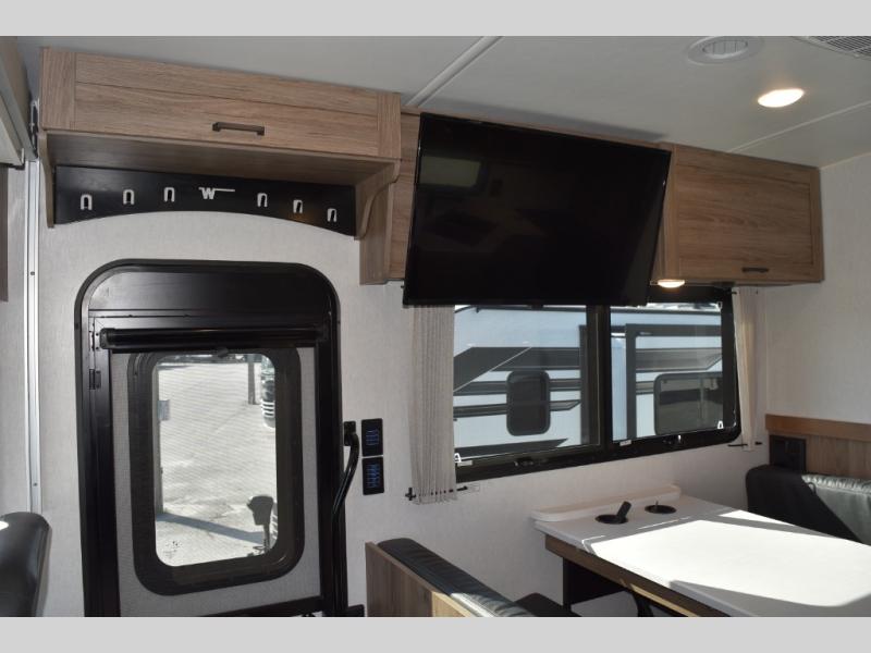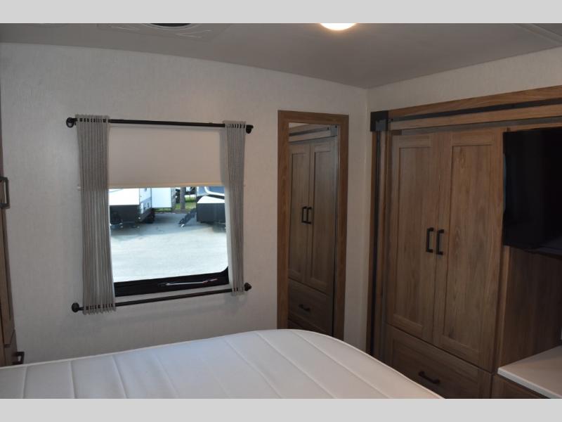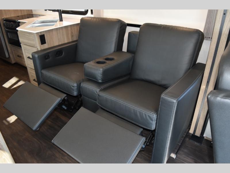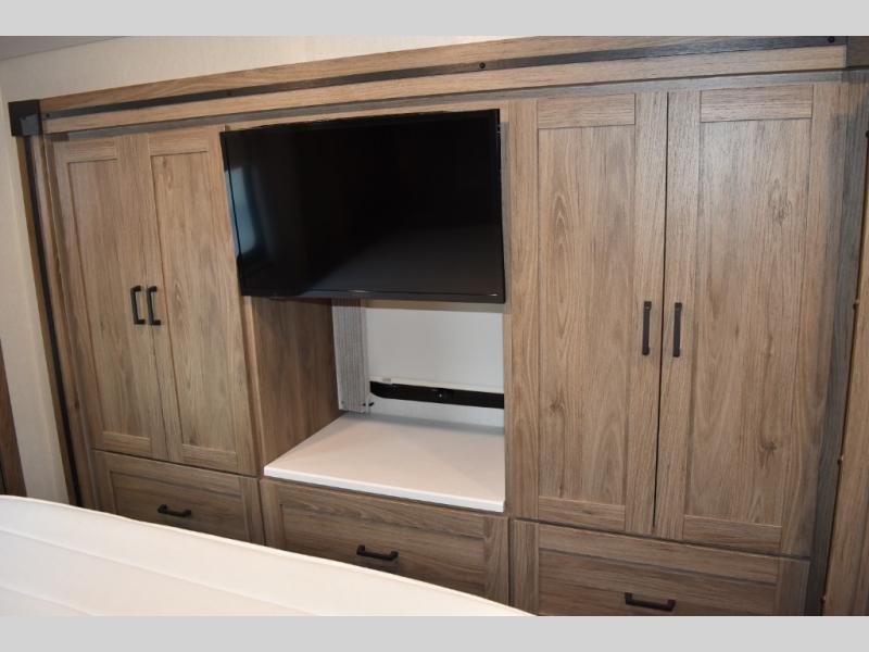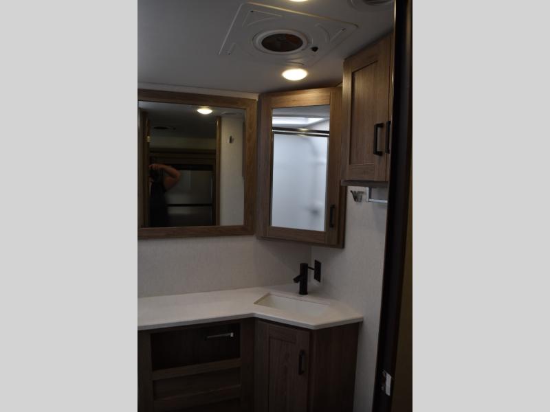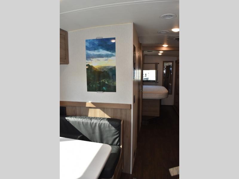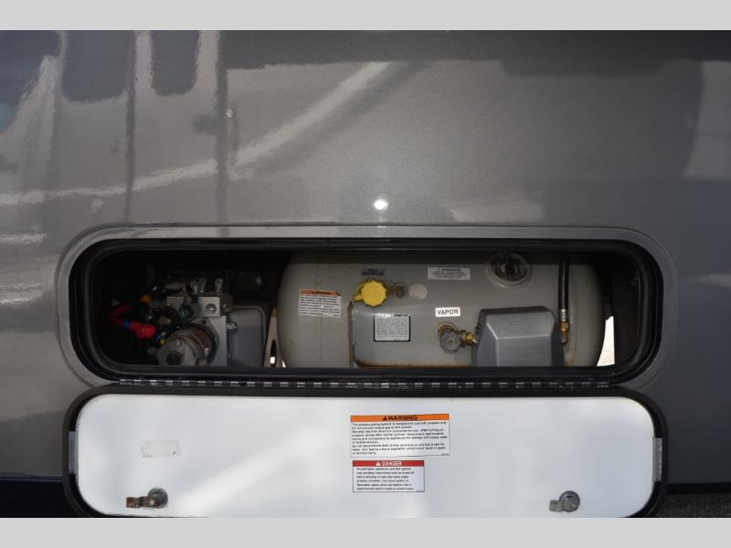 Head to your favorite destinations with this motorhome! You can travel with your spouse or bring an extra guest or two when you add the optional StudioLoft 50" x 80" powered bed above the cab. The 40" x 66" sofa bed can also transform into an extra sleeping space but if you don't need it then you can switch it out for the optional theater seating. Enjoy delicious home cooked meals while on the road with the three burner cooktop or head to the exterior kitchen to breathe in some fresh air while you cook. Eat your meals at the 42" x 70" dinette with Hi-Lo table and freshen up each morning in the full bathroom featuring a 26" x 38" shower. The rear private bedroom has a 72" x 75" king bed to lay your head on at night and wardrobes on either side of a storage area with a location for an optional TV to be added!