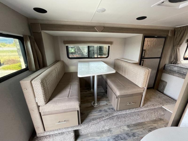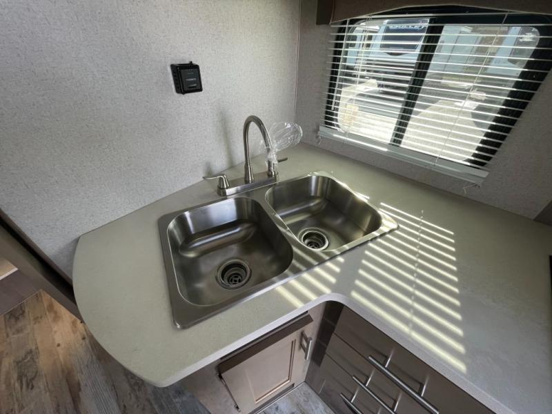 If you have a long bed truck then you need this truck camper for your next getaway! The super face-to-face booth dinette and Dometic 7 cu. ft. refrigerator within a slide out opens up the living space and you can even add an optional power bunk for extra sleeping space. There is also a front king bed to lay your head on at night with a nightstand and a sliding wardrobe door for your clothes. Prepare delicious home cooked meals for everyone with the sealed three burner cooktop with residential grate and easily clean up with the stainless steel double bowl sink. Everyone will stay squeaky clean with the separate one-piece fiberglass shower in the dry bath and there is a dual layer skylight for added natural lighting as you get ready. The mandatory Elite Option Package on this model comes with a 26" friction hinge entrance door with a dead bolt and screen, flush mount LED lights, Lamilux 4000 two-toned high gloss gel-coat fiberglass exterior, and more!