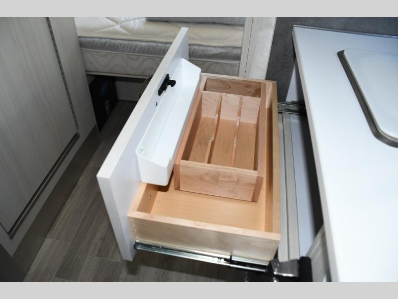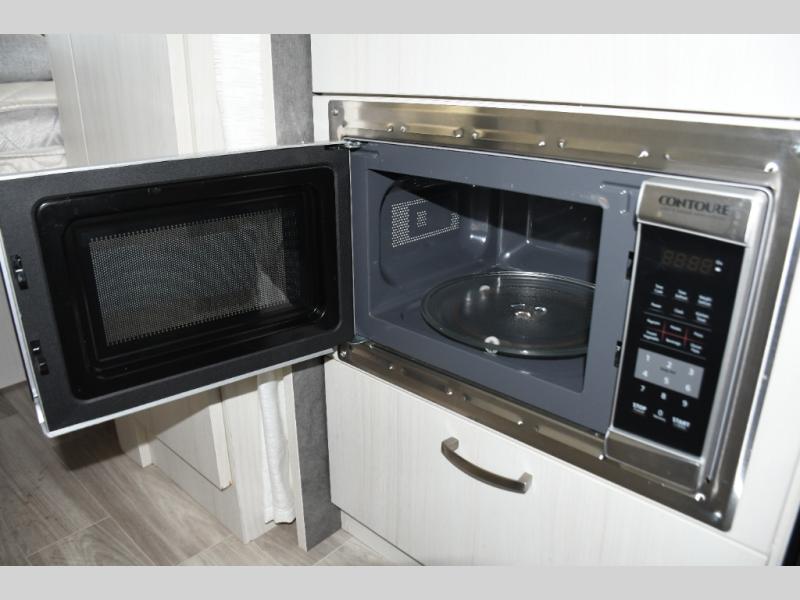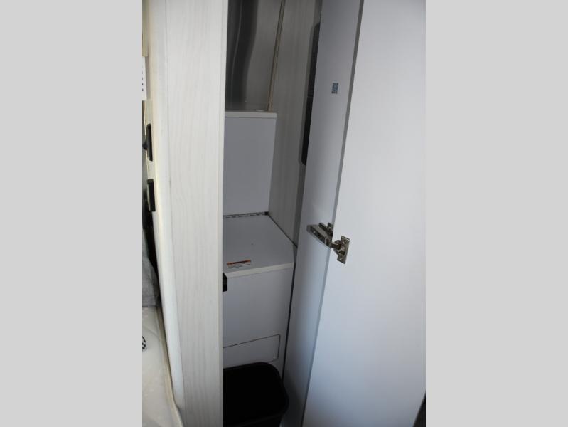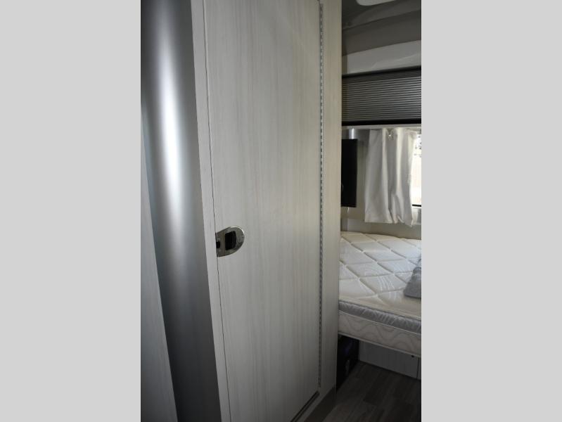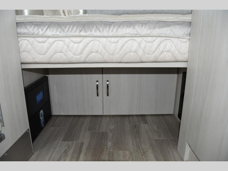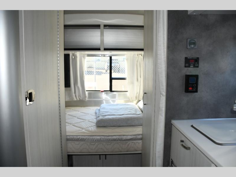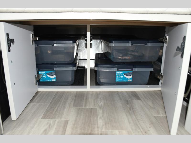 Step inside and you’ll immediately notice the thoughtful layout designed to maximize space and livability. Natural light pours in through panoramic windows, creating an open, airy feel and letting you enjoy stunning views from wherever you’re parked. The front queen bed offers a cozy and comfortable place to rest, while clever storage options keep your gear organized and accessible on the road.