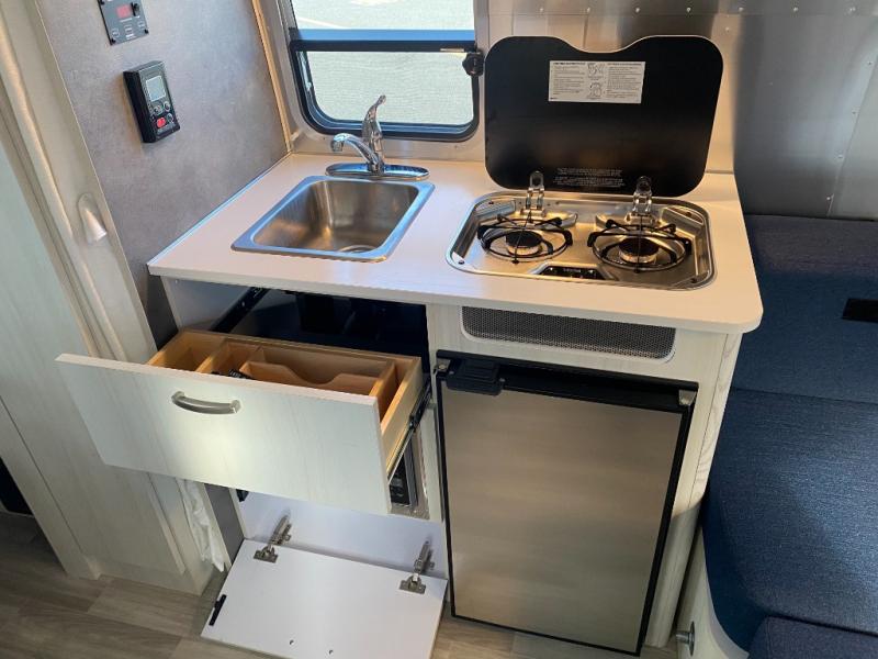 The lightweight, easy-to-maneuver Bambi travel trailer by Airstream is your ticket to outdoor fun and adventure. The panoramic front windows with blackout shades will provide natural lighting during the day, and privacy at night, and the seamless vinyl flooring will be easy to keep clean. Each model includes an efficient A/C with a heat strip, roll top overhead cabinets, and Performatex dinette cushions that are stain resistant. You will appreciate the 12V USB-A and USB-C ports to keep your devices charged, and the 24" 12V HDTV will provide entertainment when the weather isn't cooperating. The Bambi travel trailers also include a powered hitch jack with a light, roller shades, and an optional solar charging system for off-grid capabilities!