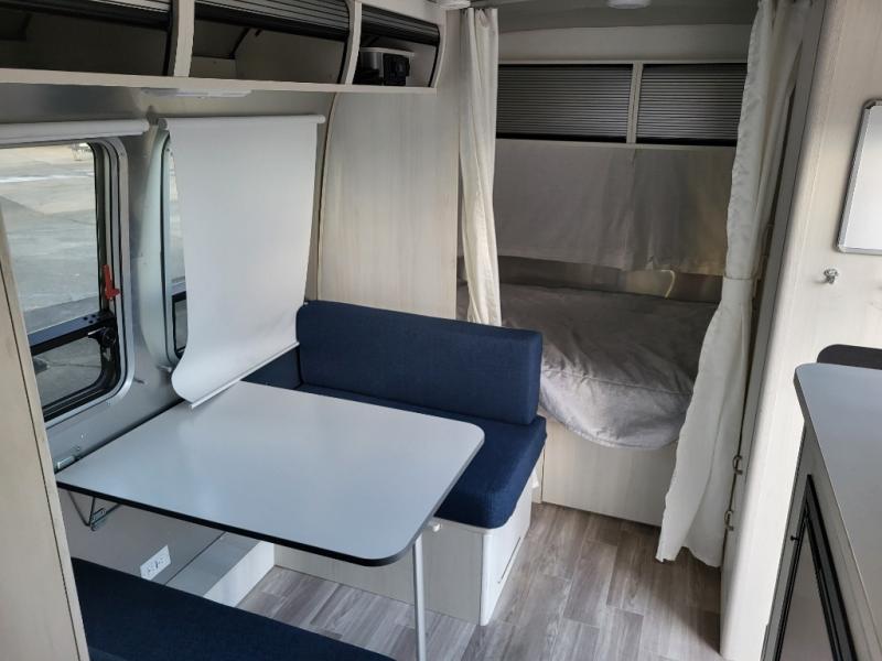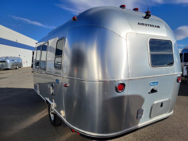 The lightweight, easy-to-maneuver Bambi travel trailer by Airstream is your ticket to outdoor fun and adventure. The panoramic front windows with blackout shades will provide natural lighting during the day, and privacy at night, and the seamless vinyl flooring will be easy to keep clean. Each model includes an efficient A/C with a heat strip, roll top overhead cabinets, and Performatex dinette cushions that are stain resistant. You will appreciate the 12V USB-A and USB-C ports to keep your devices charged, and the 24" 12V HDTV will provide entertainment when the weather isn't cooperating. The Bambi travel trailers also include a powered hitch jack with a light, roller shades, and an optional solar charging system for off-grid capabilities!