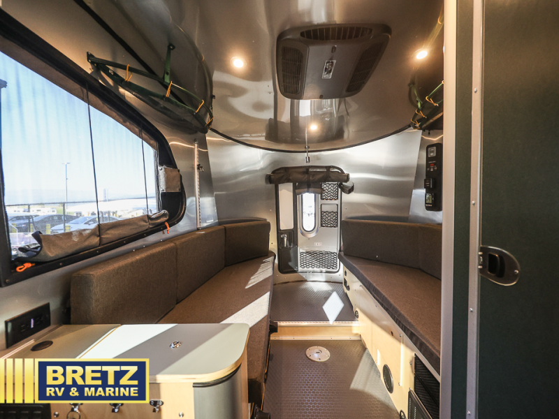 With any Basecamp travel trailer by Airstream, adventure knows no limits! The exterior includes a hand painted chassis, fluorocarbon treated UV protected aluminum, and a custom aluminum handcrafted entry door with window. You'll also find handcrafted welded extruded aluminum window frames, a torsion axle with shock absorbers, and Nev-R Adjust brakes. The interior offers Airstream Connected pre-wire, complete aluminum interior walls and ceiling, seating with Spradling stain resistant indoor/outdoor cushions and a laminate galley top, plus seamless vinyl flooring for durability and easy cleanup after all the adventures. A few new features you will enjoy are the SmartPlug 30 Amp shore power, the aluminum Aircraft L-track storage system in the floor, and the optional fully enclosed tent, giving you the option to expand your outdoor living space!