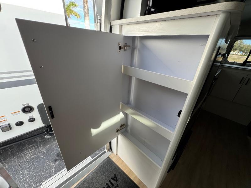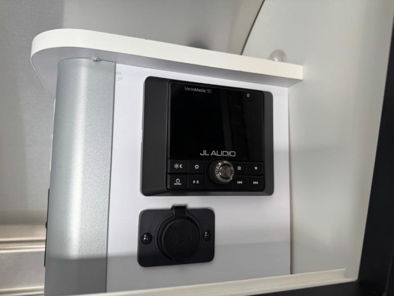 Would you like to enjoy unforgettable trips? If so, all you need is this Caravel travel trailer! The interior is outfitted with handcrafted Italian Lite-Ply laminated cabinetry, dimmable LED lighting, seamless vinyl flooring, and Ultraleather fabric on the furniture for a completely stylish and elegant look. The overhead storage has sliding doors for easy access, and the kitchen is quite engaging with its three-burner gas cooktop, microwave, stainless steel sink with Moen faucet, and Baraldi cooking vent with light. You can even use the LED reading lights at the pillowtop memory foam mattress to finish that last chapter before bed.
