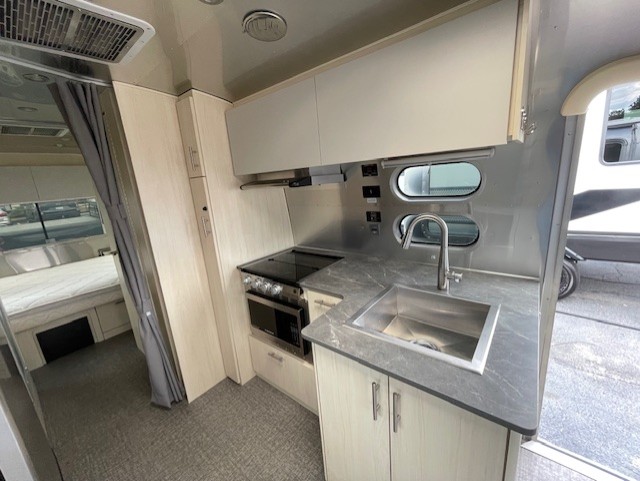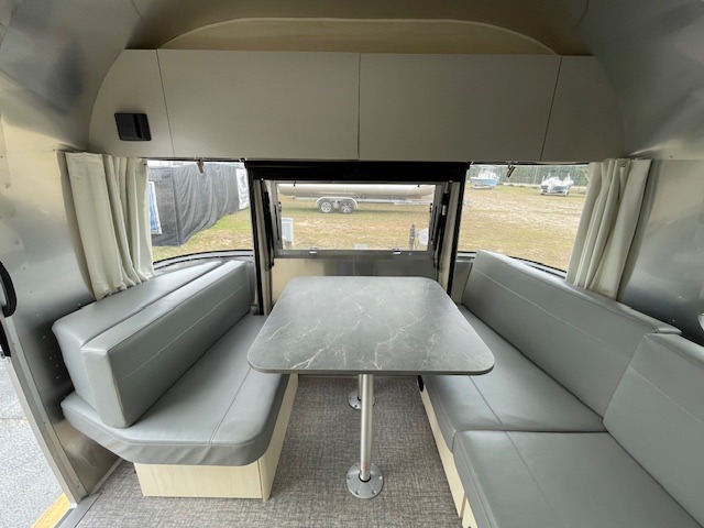 The family-friendly and popular Flying Cloud travel trailers by Airstream are built for ease of towing with a rear-view camera to make reversing and parking easier and stainless steel front stone guards to protect the lower segments from road debris. The iconic Airstream design is created outside and inside by the semi-monocoque aluminum superstructure, the temperature reducing one-piece white aluminum roof, the panoramic front windows, and the stylish aluminum wheels. The interior will have you feeling right at home with handcrafted cabinetry, plenty of storage and counter space, sleek roller blinds and blackout curtains, plus residential style faucets!