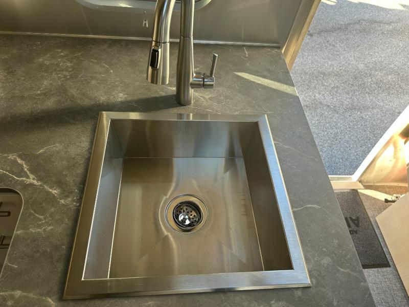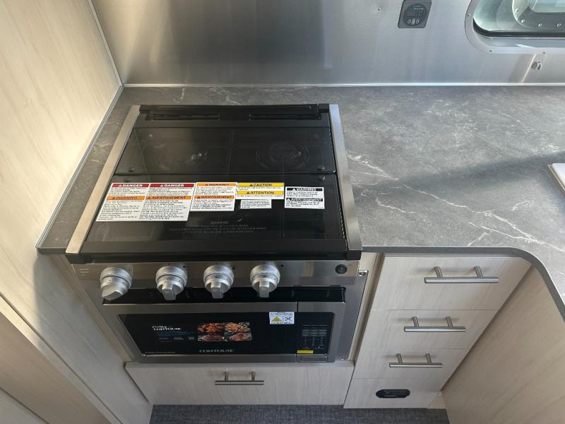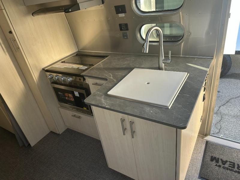 The family-friendly and popular Flying Cloud travel trailers by Airstream are built for ease of towing with a rear-view camera to make reversing and parking easier and stainless steel front stone guards to protect the lower segments from road debris. The iconic Airstream design is created outside and inside by the semi-monocoque aluminum superstructure, the temperature reducing one-piece white aluminum roof, the panoramic front windows, and the stylish aluminum wheels. The interior will have you feeling right at home with handcrafted cabinetry, plenty of storage and counter space, sleek roller blinds and blackout curtains, plus residential style faucets!