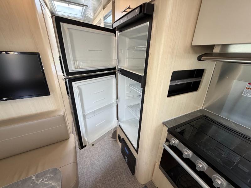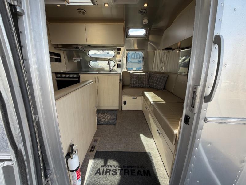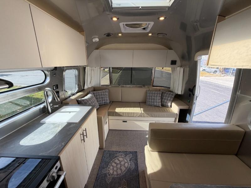 With each Flying Cloud travel trailer by Airstream, there are two axles, and each is built for ease of towing, plus there is a rear-view camera to make reversing and parking easier, and stainless steel front stone guards to protect the lower segments from road debris. The iconic Airstream design is created outside and inside by the semi-monocoque aluminum superstructure, the temperature reducing one-piece white aluminum roof, the panoramic front windows, and the stylish aluminum wheels. The interior will have you feeling right at home with handcrafted cabinetry, plenty of storage and counter space, sleek roller blinds and blackout curtains, plus residential style faucets!