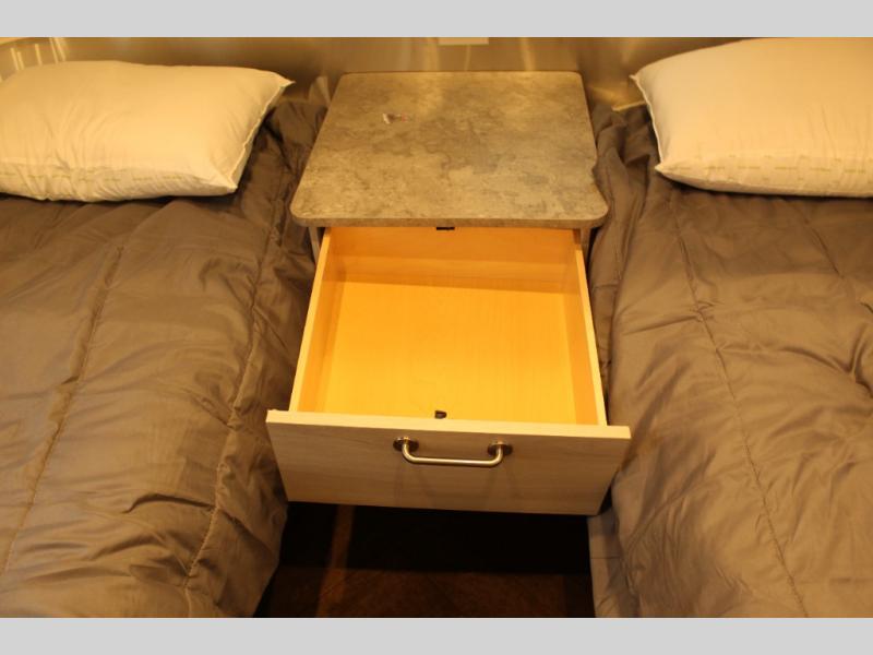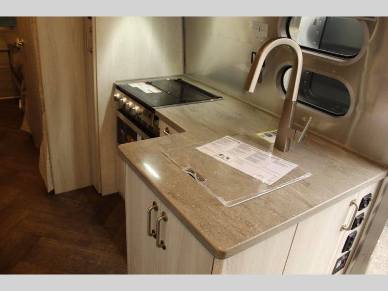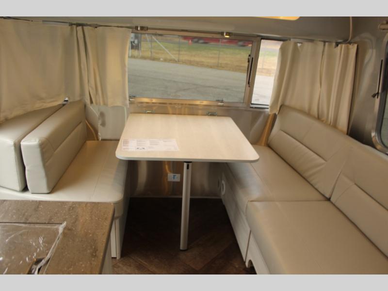 Every time you step foot into the Airstream International travel trailer, you will feel as if you are breathing in a breath of fresh air! The fresh coastal décor was inspired by the waterfront, and the stylish interior delivers a relaxing environment and comfortable luxury. The panoramic windows increase the amount of natural sunlight that streams through to the interior, but they also have blackout shades that you can close whenever you need a darkened room. The beautiful handcrafted Italian Lite-Ply laminated cabinetry is an attractive base for the overhead storage lockers that have sliding doors and LED lighting. The dimmable interior LED lighting will create the perfect amount of illumination for you as you spend time indoors. The exterior has excellent features as well with its enclosed aluminum insulated heated underbelly, unique front door key with heavy-duty deadbolt, optional solar package, solar front window protection, and exterior shower with hot and cold water.