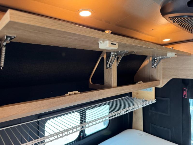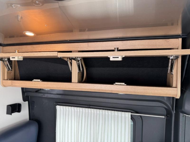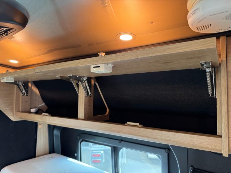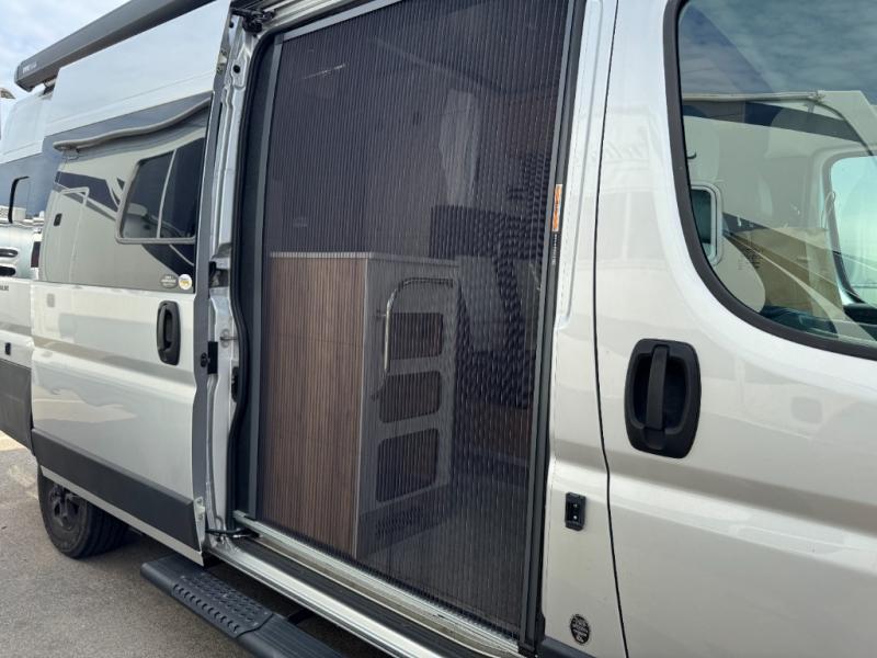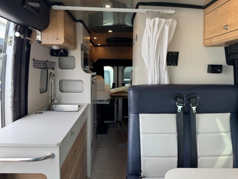 The Airstream Rangeline offers complete comfort and flexibility with great living spaces, flexible storage throughout, and all the amenities you need to enjoy travel. Its sleek design with painted grille, two interior color choices with Warm River Oak cabinets and drawers, and gray laminate countertops allows you to travel in style. The Ram ProMaster 3500 chassis offers front-wheel drive and 276 horsepower, with an efficient gas-powered heat and hot water system plus SumoSprings and SuperSprings for an overall better driving experience. Rear storage includes MOLLE panels on the rear doors to hang all your gear, and space under the bed for even more cargo. The optional pop-top roof has three screen windows and another bed, expanding sleeping capacity to four people.
