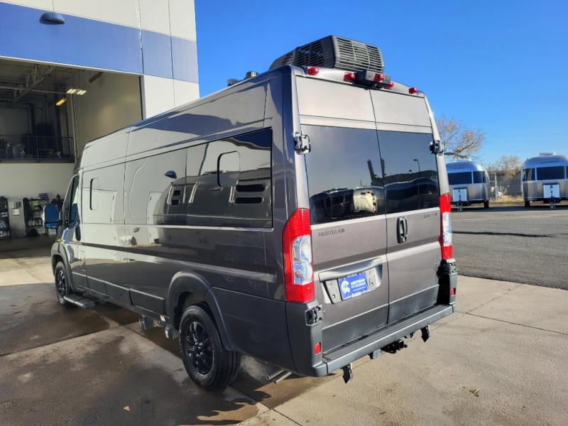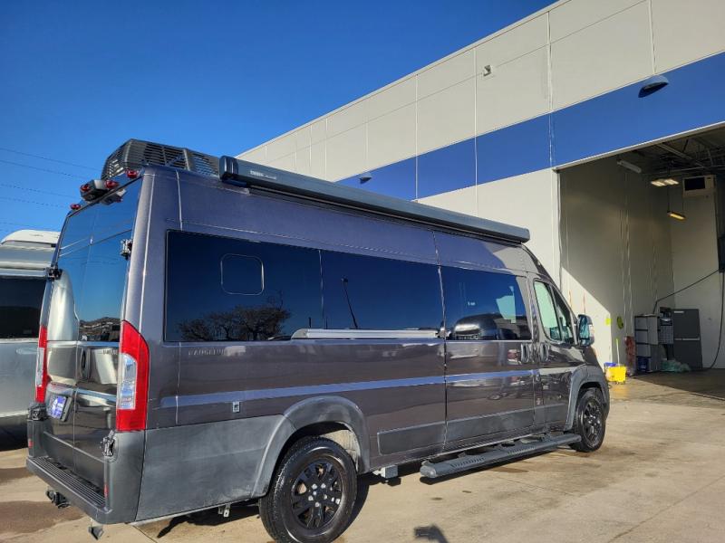 The Airstream Rangeline offers complete comfort and flexibility with great living spaces, flexible storage throughout, and all the amenities you need to enjoy travel. Its sleek design with painted grille, two interior color choices with Warm River Oak cabinets and drawers, and gray laminate countertops allows you to travel in style. The Ram ProMaster 3500 chassis offers front-wheel drive and 276 horsepower, with an efficient gas-powered heat and hot water system plus SumoSprings and SuperSprings for an overall better driving experience. Rear storage includes MOLLE panels on the rear doors to hang all your gear, and space under the bed for even more cargo. The optional pop-top roof has three screen windows and another bed, expanding sleeping capacity to four people.