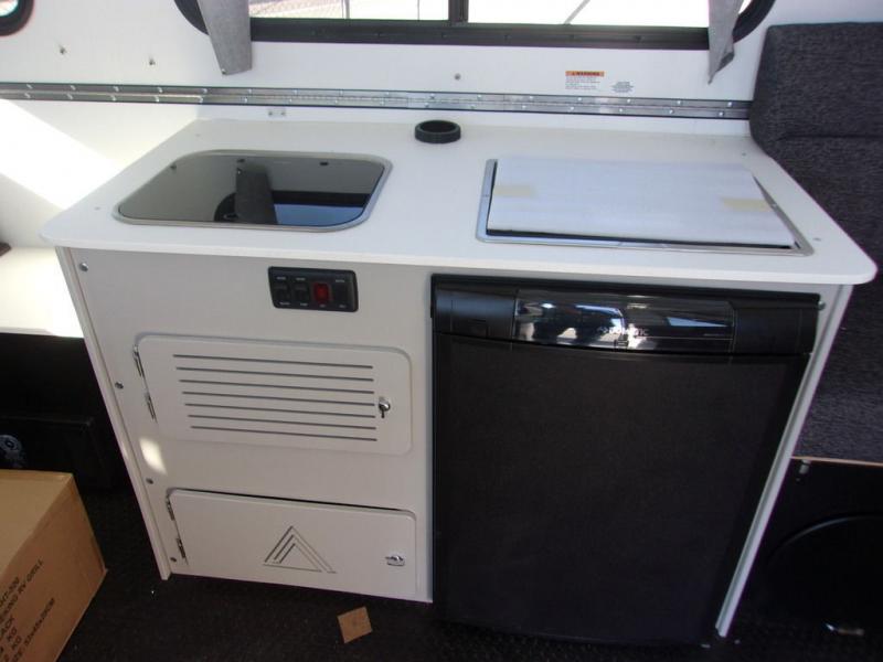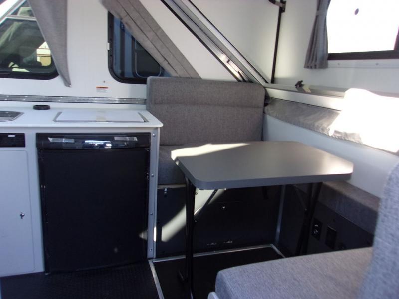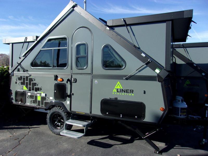 The Evolution A-frame camper by Aliner is coming to you with residential features and solid construction materials. You'll love the slate gray exterior, and the Azdel composite panels included help prolong the life of your camper. There are 15" off-road tires with graphics package, LED running lights, exterior baggage doors, plus many more exterior conveniences. The Evolution A-Frame camper comes with commercial grade, raised coin polyvinyl flooring, SIMONA BOATBOARD interior cabinets and furniture, and three indoor electrical outlets to name a few interior comforts.